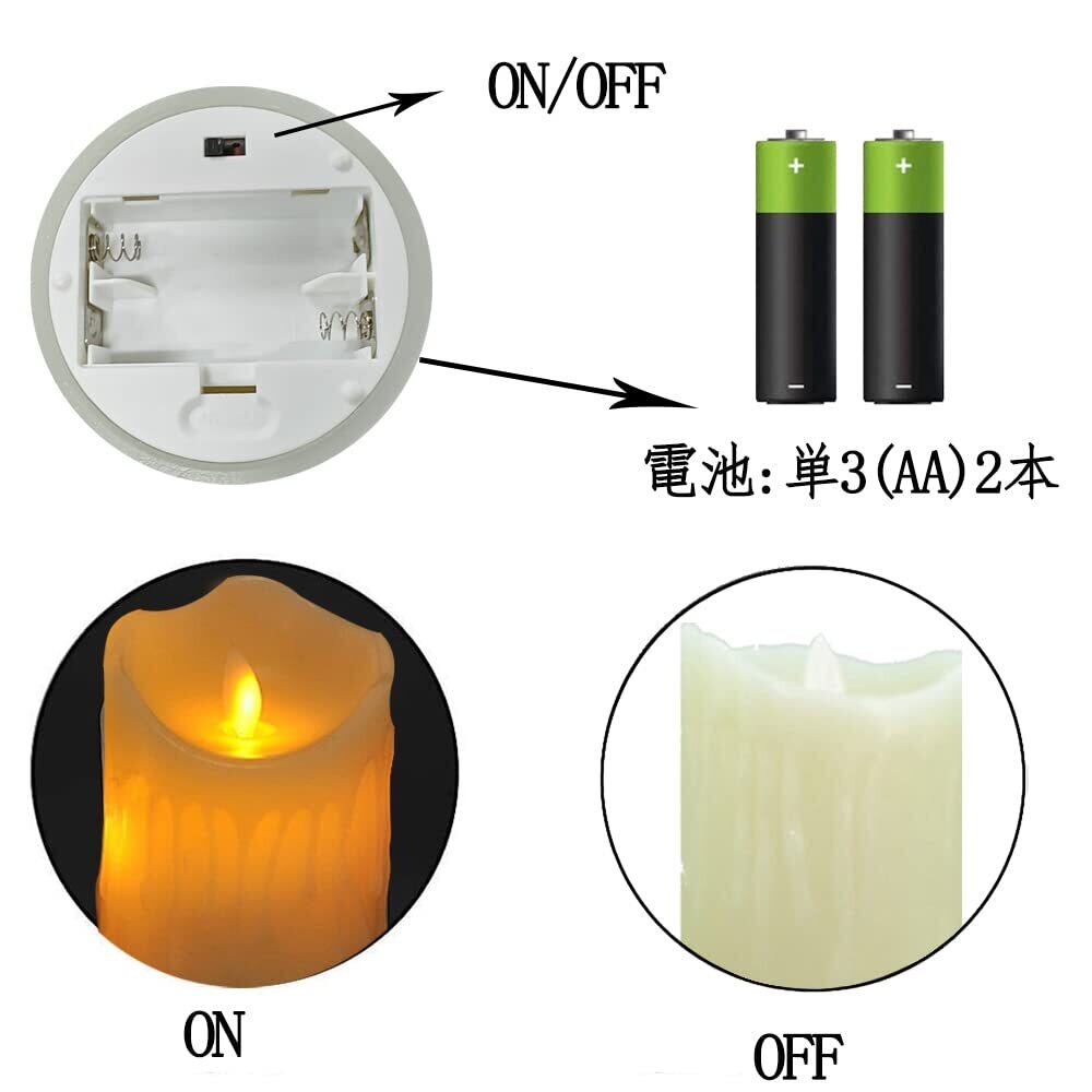 ✔【使用便利】1) 2本のAA電池(含まれていません)を各キャンドルのバッテリーハウスに入れてから、「オン」スイッチに移動します。2) IRリモコン(CR2025電池を含む)を使って、タイマー機能などのキャンドルをコントロールできます。タイマーモード:2時間/4時間/6時間/8時間の自動消灯タイマー設定可, 1つのリモコンで距離が6M未満であれば、すべてのキャンドルをコントロールできます。