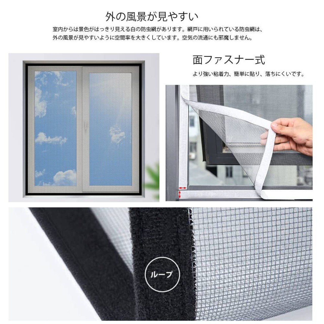 【工事不要・取付簡単】マジックテープ付きの網戸は、窓枠に貼っておくだけで、必要なサイズまたは形にカットします、穴を開けずに、素人でも簡単に操作できます。蚊よけあみどは粘着テープ付きマグネット式なので、木製・鉄製・アルミ製など窓枠の素材を選ばず、簡単に取り付けることができます。(日本語の説明書付き)