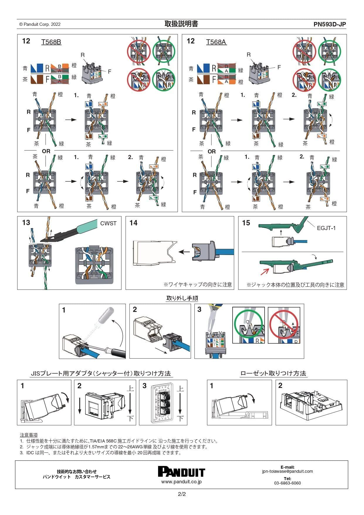 ●Cat3、5、5e、6、6A に対応しているツイストペアケーブル●導体外径:φ0.4mm(AWG26)~φ0.65mm(AWG22) の単線および導体より線●絶縁体外径:最大φ1.52mm●外被覆径:φ5.08mm~φ8.38mmのUTP を設定●使用温度範囲:-10~60℃●サイズ:W44.0×D40.9×H22.3mm(公差±0.25mm)