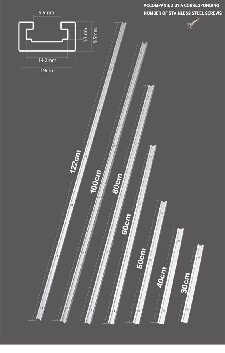 2個 Tスロットトラック 19mm×9.5mm規格マイタートラック マイタースロット天板用 アルミ合金、大工ツール テーブルソー用 (300mm)