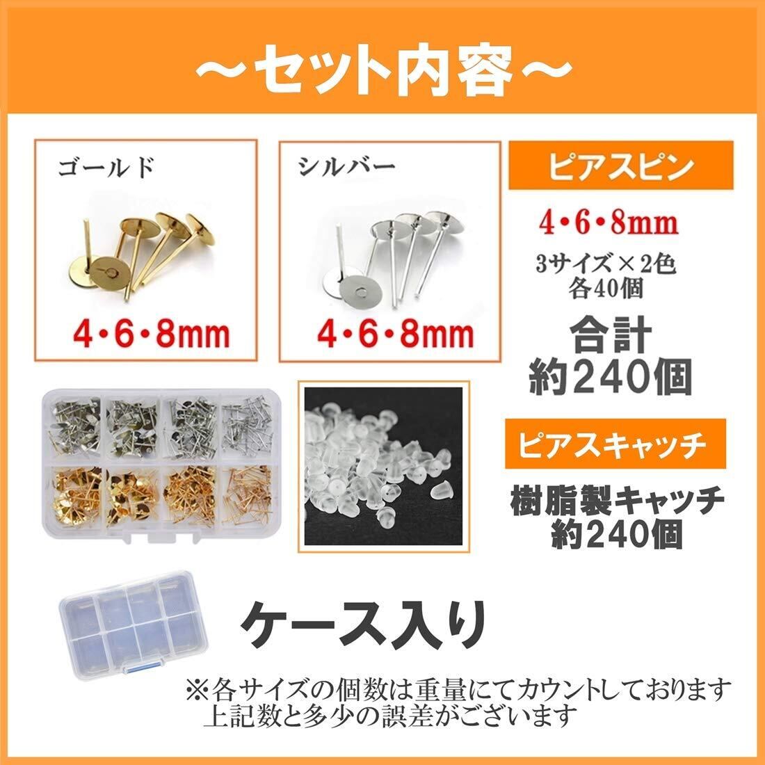 ピアスピン 3サイズ/4・6・8mm/ゴールド・シルバー/各サイズ40個/合計240個 /素材:ステンレス