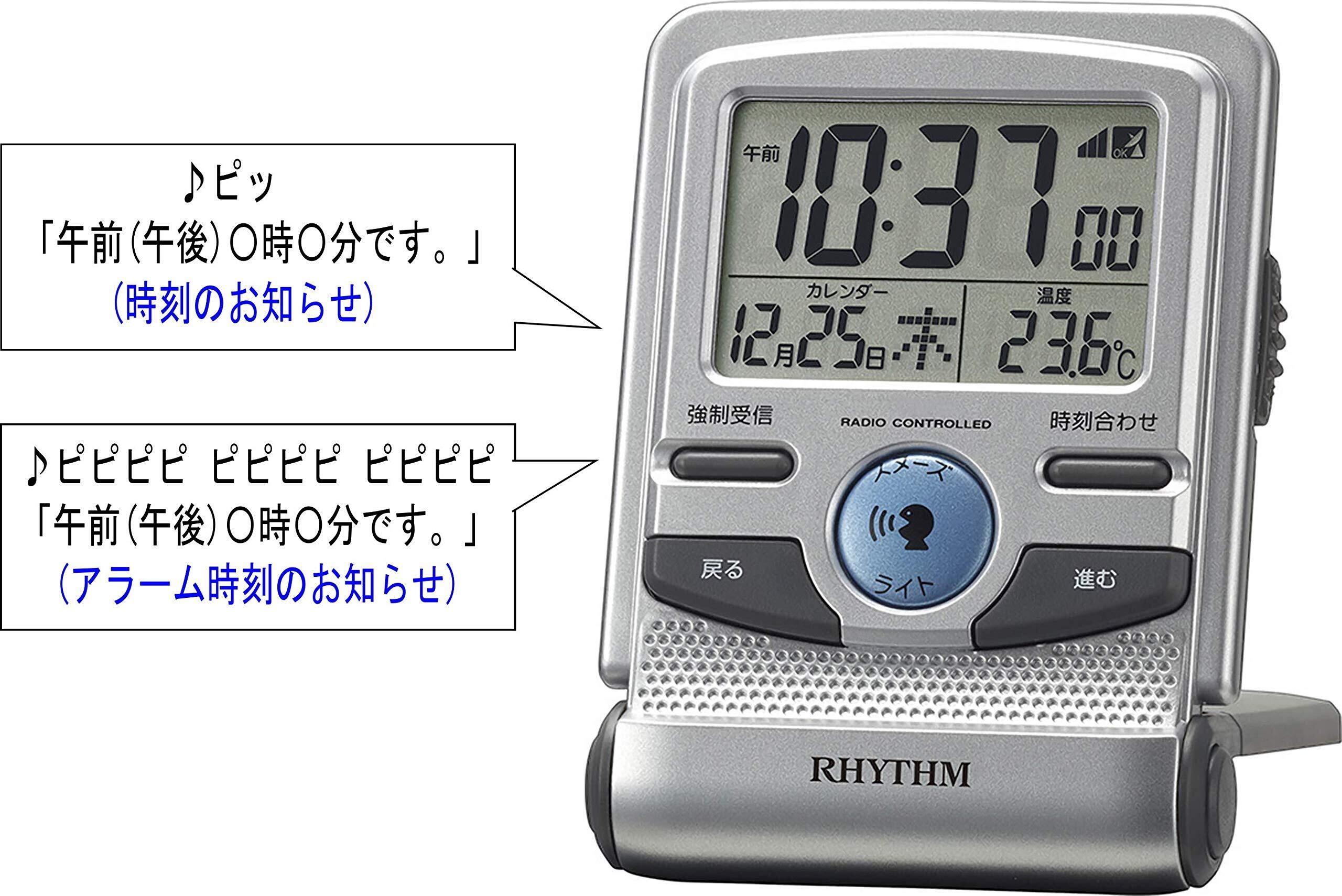 リズム(RHYTHM) 目覚まし時計 電波時計 音声アラーム トラベルクロック シルバー 9.5x7x2.1cm(閉じた状態) 8RZ214SR19
