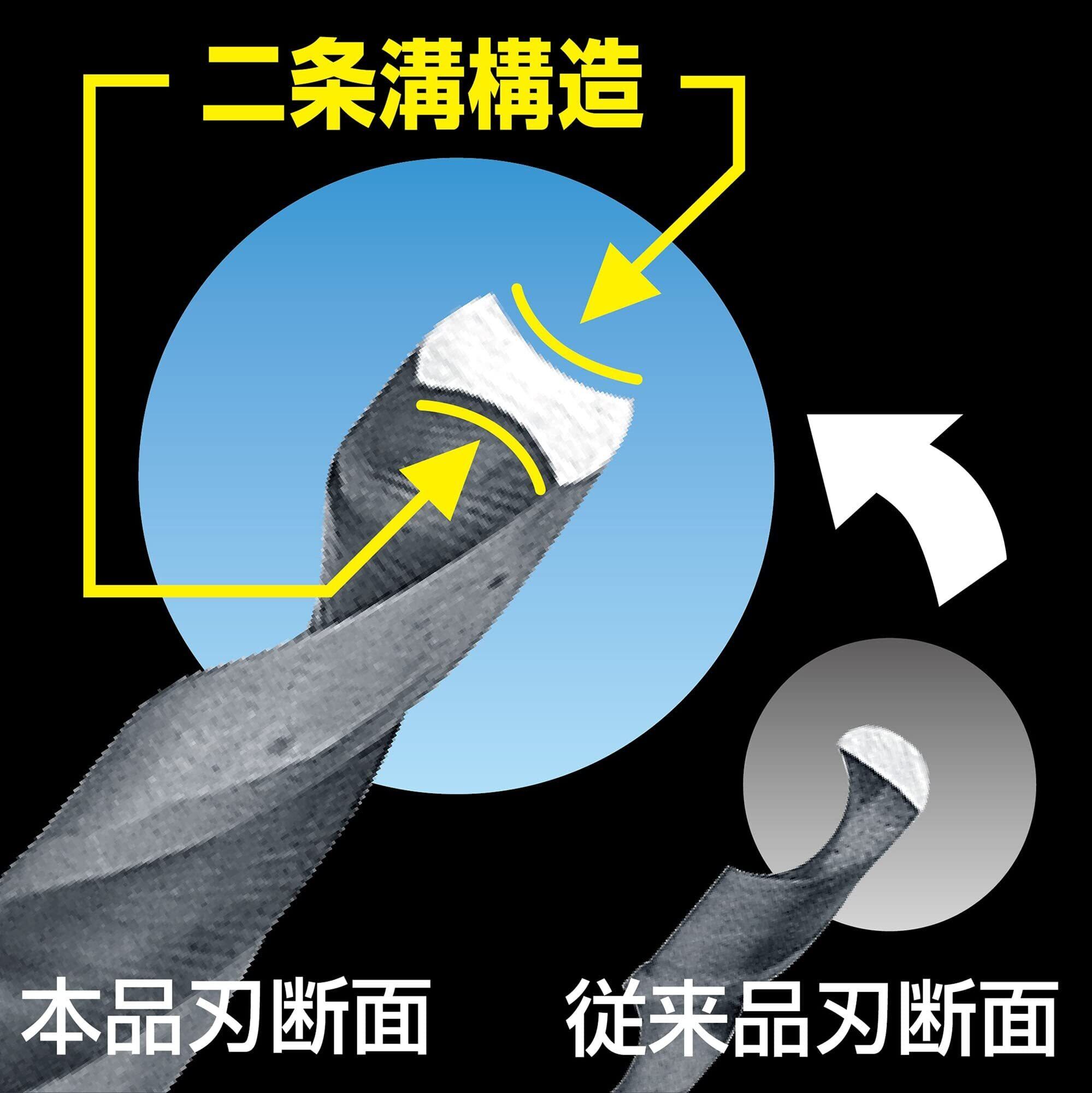 ●折れに強い二条溝構造とハイス鋼で耐久性アップ