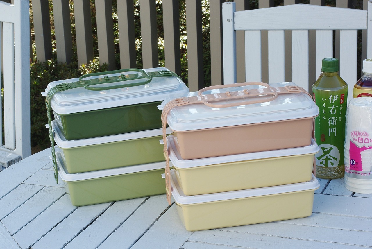 素材・材質:本体・外フタ・取り皿=ポリプロピレン/中フタ・ベルト=ポリエチレン