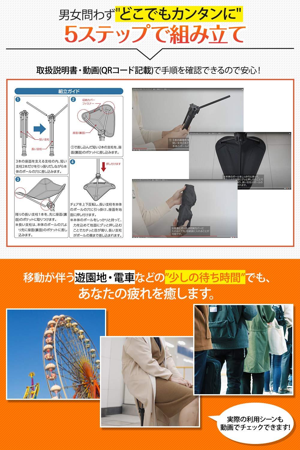 ✨【どこでもカンタン1本脚:5ステップ、3本脚:6ステップ組立(QRコード動画付き取扱説明書付属)】好みの高さや体形に応じて、1本脚:42cm・51cm・56cm、3本脚:49・56・65cm 3段階の高さ調整が可能です。最大の高さでも安定しており、子どもから大人まで幅広い世代にご利用いただけます。電車や遊園地などの少しの待ち時間でもご利用いただけます。