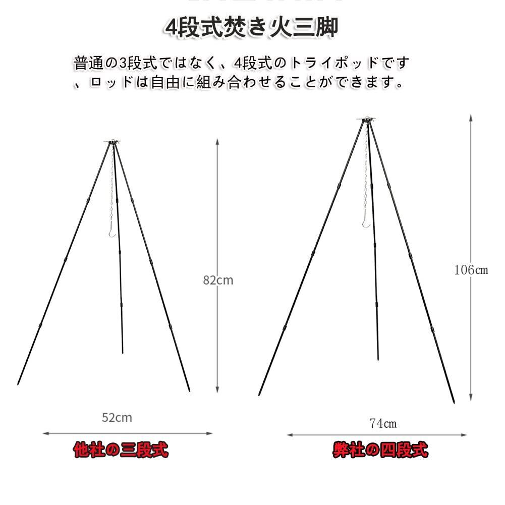 Sitengle トライポッド 焚き火三脚 キャンプ 【4段式】ダッチオーブンスタンド 耐荷重15kg 高さ調節 収納袋付き 焚き火ハンガー アウトドア (ブラック)