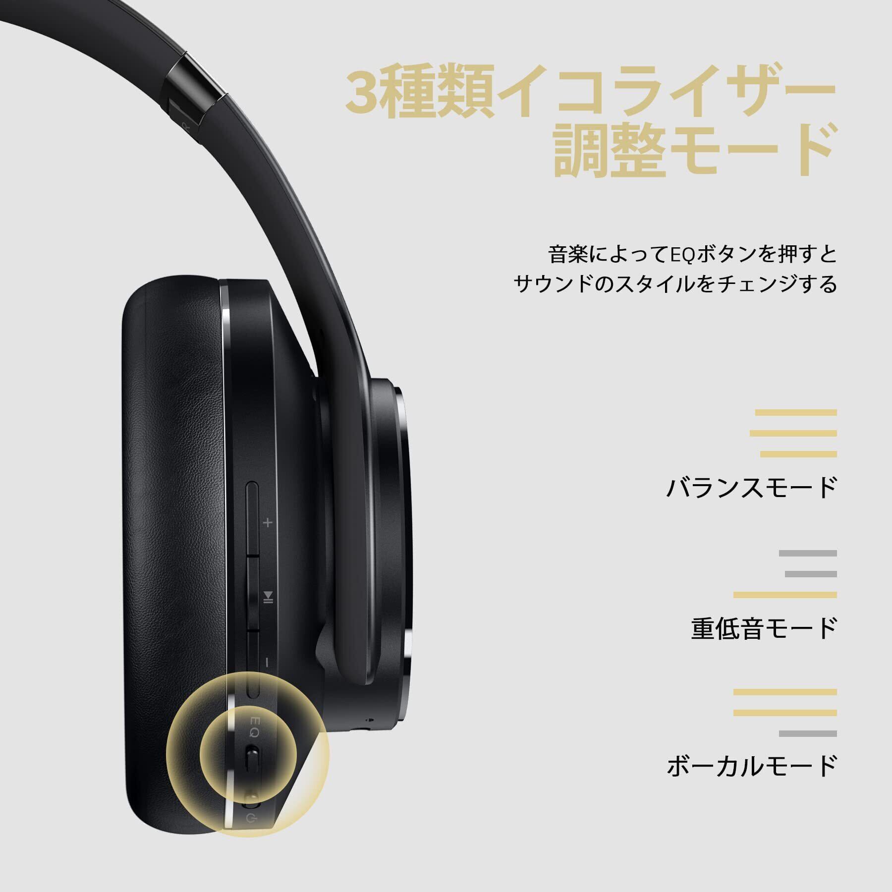 DOQAUS(ドカアス) ヘッドホン Bluetooth5.3 ワイヤレスヘッドホン 最大50時間連続再生 3EQサウンドモード オーバーイヤーヘッドホン マイク内蔵 有線対応 密閉型 メモリーフォーム 耳に優しい 携帯・パソコン・ウォークマン対応 LIFE3 (ブラック)
