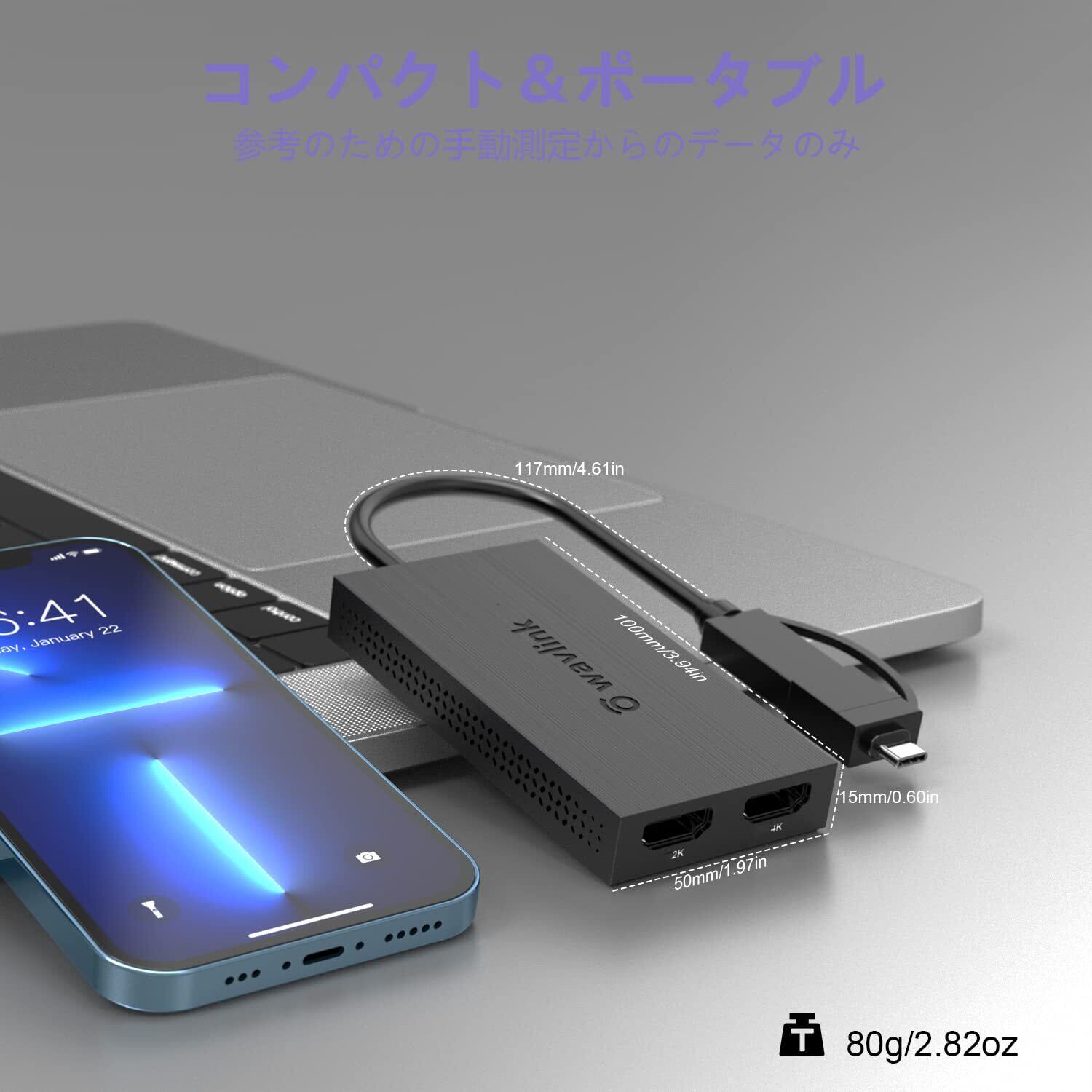 WAVLINK USB 3.0A/type-C-デュアル HDMI アダプター 4K出力 ミニドッキングステーション/最 大4K(3840x2160 @ 30Hz)ディスプレイ出力/1x4K対応 HDMI出力ポート/1x2K対応 HDMI出力ポート1xUSB 3.0ポート搭載、Windows 7/8/8.1 /10、Mac OS 10/10以降、Chromeに対応