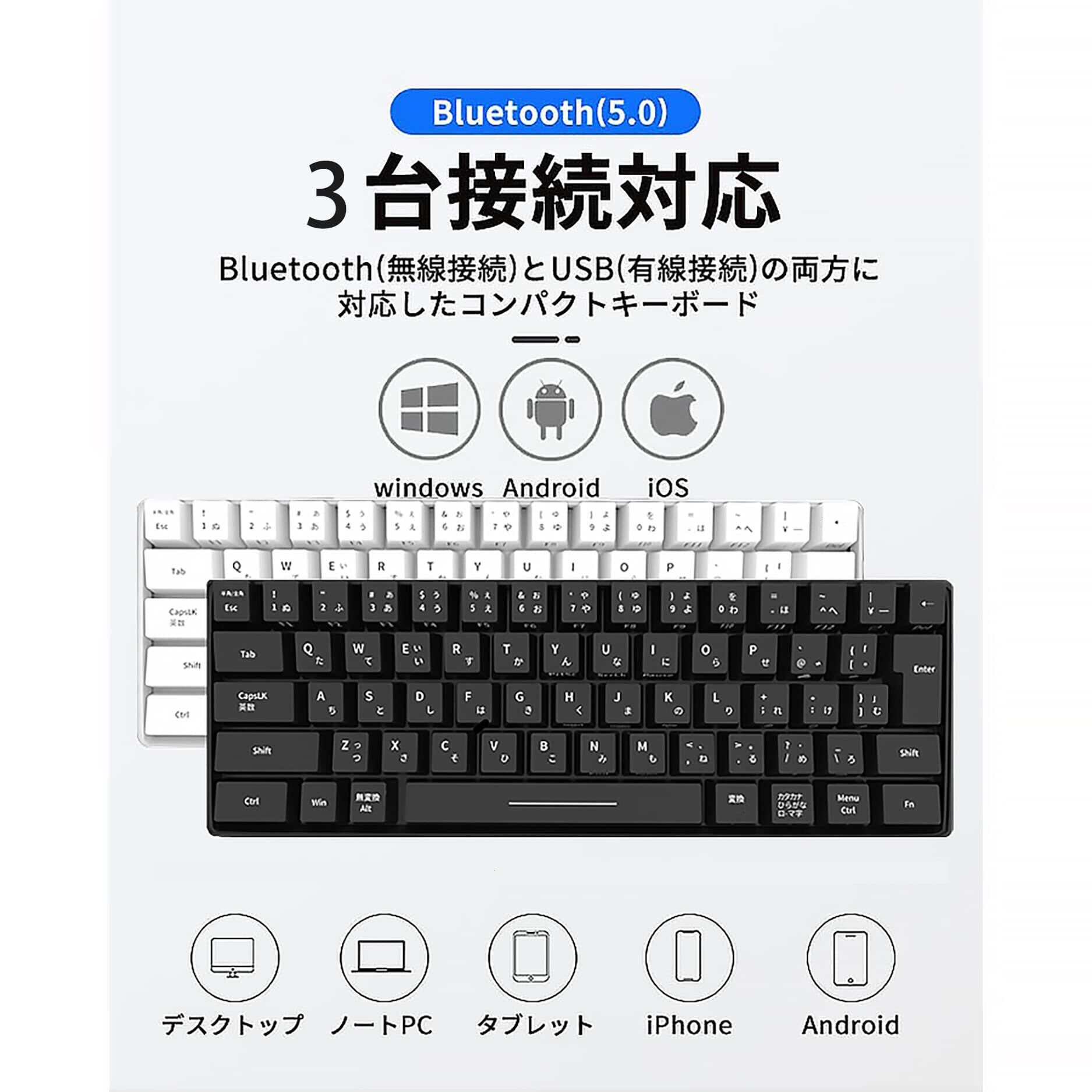 【数量限定】日本語取扱説明書 英語配列 オフィス/ゲーミング用 (青軸, LEDバックライト RGB 充電式 防水 青軸 有線 USB 2.4G無線 White) 無線 Bluetooth 63キー ゲーミングキーボード 機械式 メカニカルキーボード WENR | Synergia