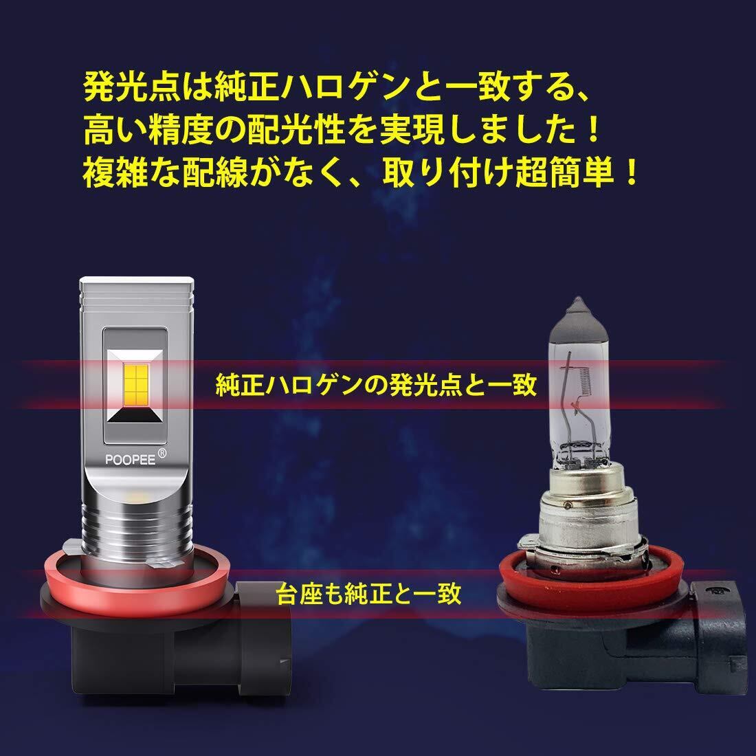 LEDフォグランプ H11 H16(国産車) H8 H9 黄色 イエロー-ポーペ(POOPEE) 60W 1200LM 3000K 12V/24V兼用 無極性 CSPチップ搭載 両面発光 2本セット
