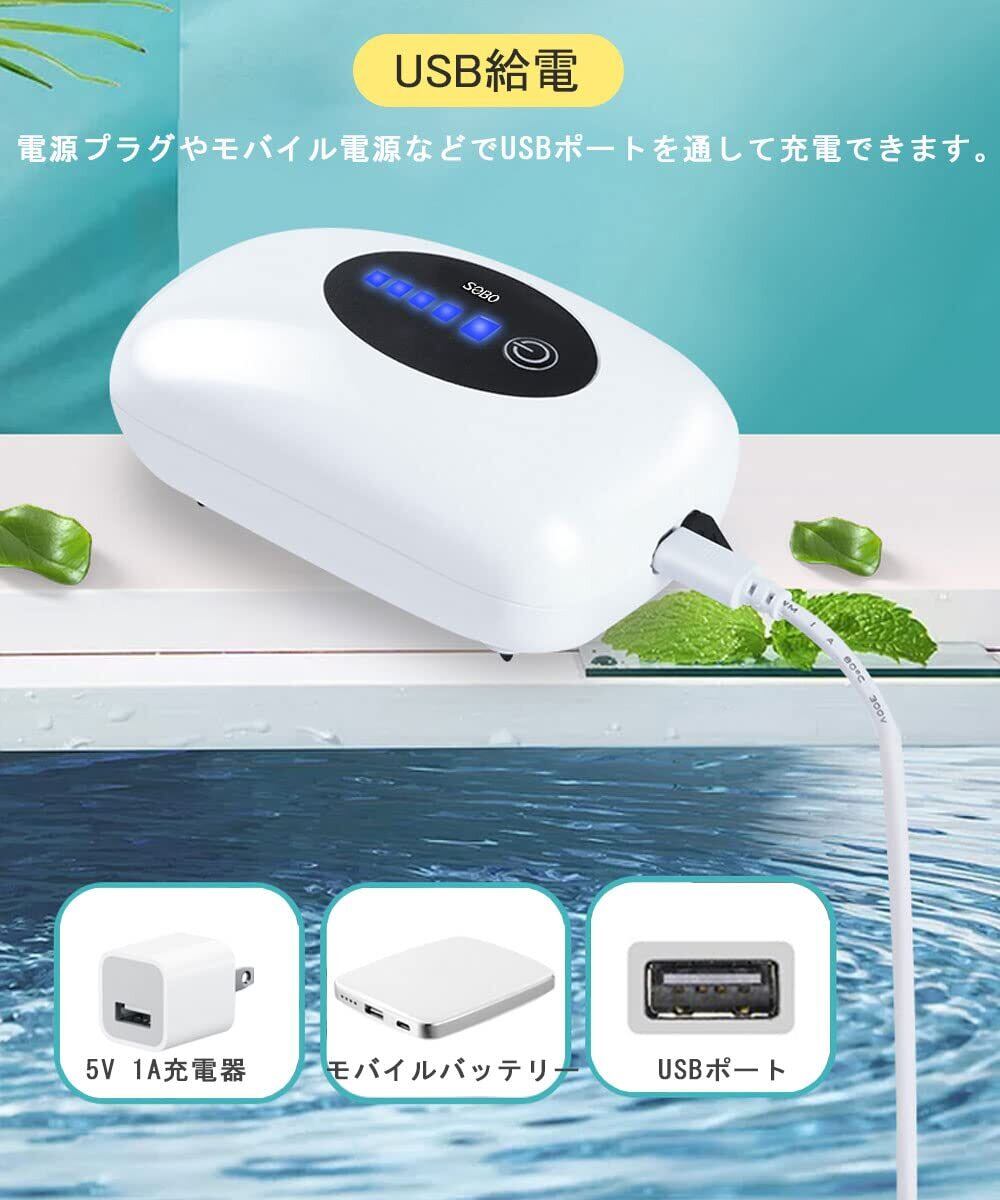 エアーポンプ 釣り/水槽 ポンプ USB充電 電池内蔵 消音30db 携帯式 酸素提供ポンプ 連続25時間 間欠モードでは50時間動作できます【連続モード・間欠モード・停電時自動起動モード】