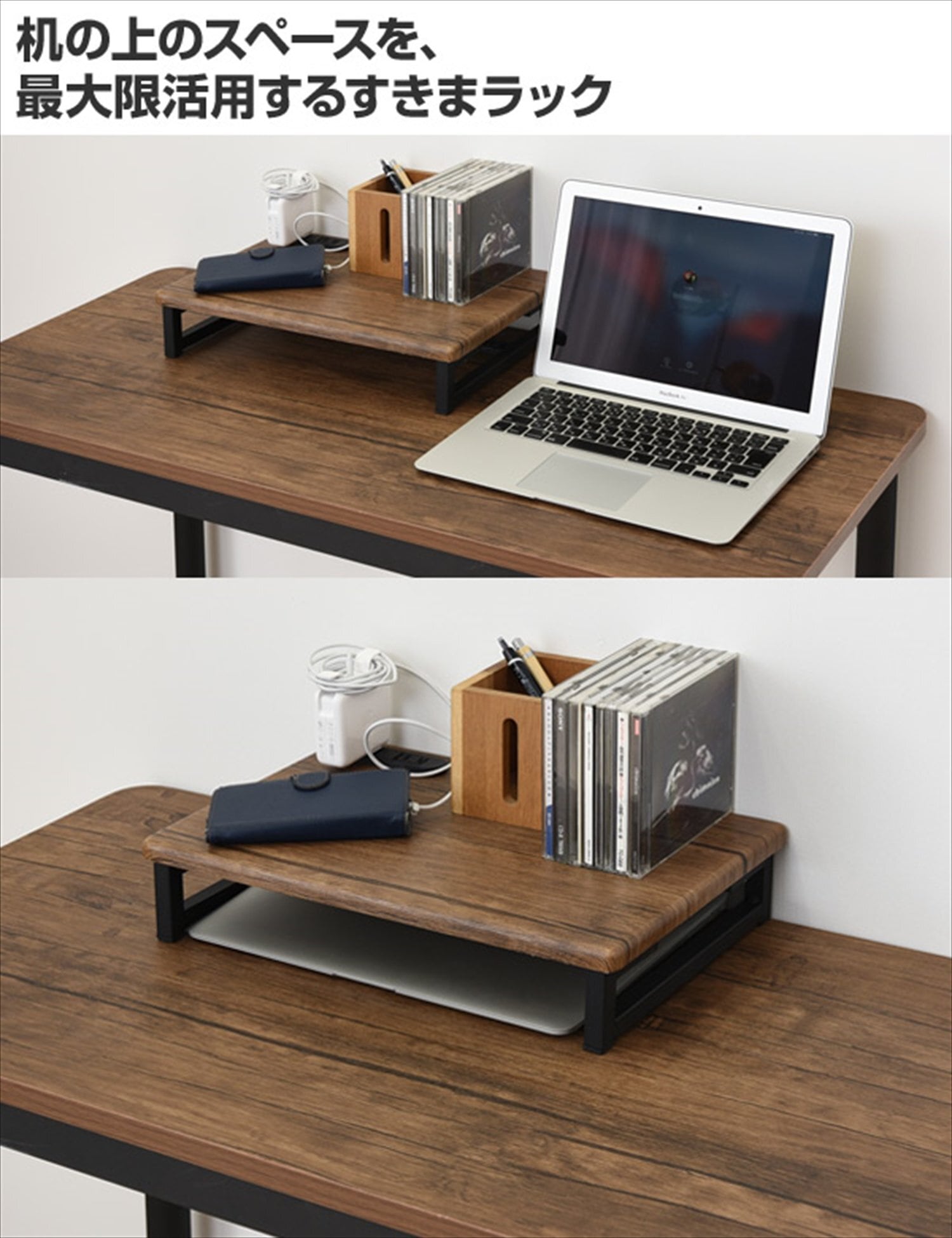 【在庫処分】山善 モニター台 幅39×奥行25×高さ8.5cm コンパクト 2口コンセント付き キーボード収納 PC台 組立かんたん アンティークブラウン/ブラック DTSE-3925(ABR/SBK) | Synergia