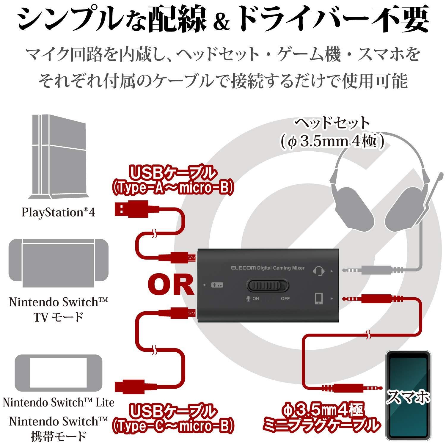 エレコム ゲーム用ボイスチャットミキサー スマホ通話しながらSwitch/PS5/PS4のゲーム音を聞けるデジタルミキサー HSAD-GM30MBK