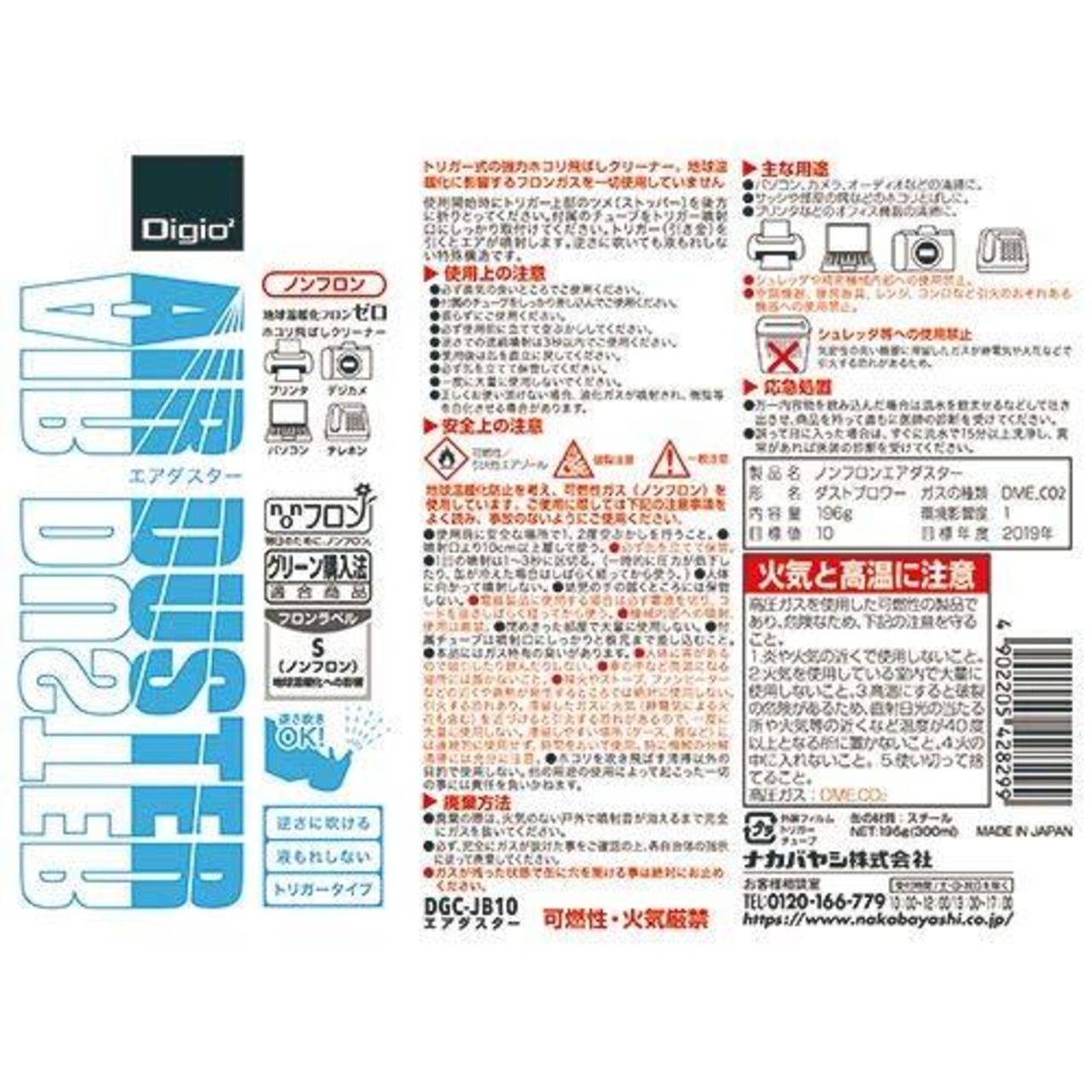 ナカバヤシ Digio2 エアダスター ノンフロン トリガータイプ 逆さ使用OK 2本組 44675