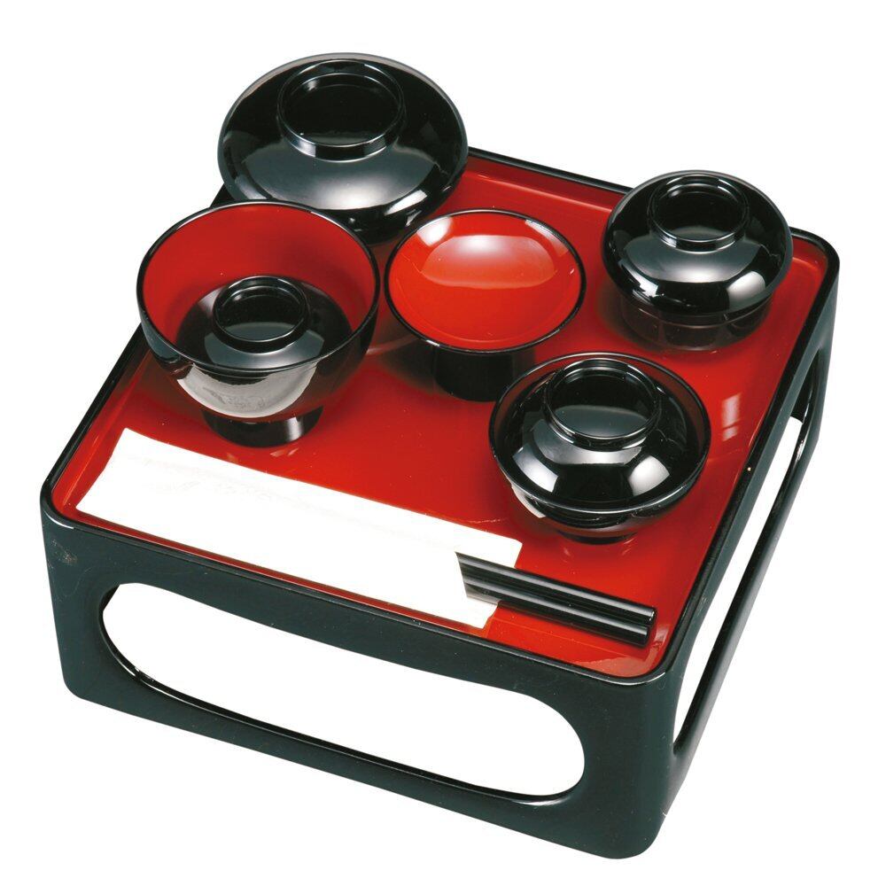 紀州塗 6寸 仏器膳 黒内朱 椀付 001-1217 創業嘉永元年 黒田屋清太夫謹製(霊供膳)