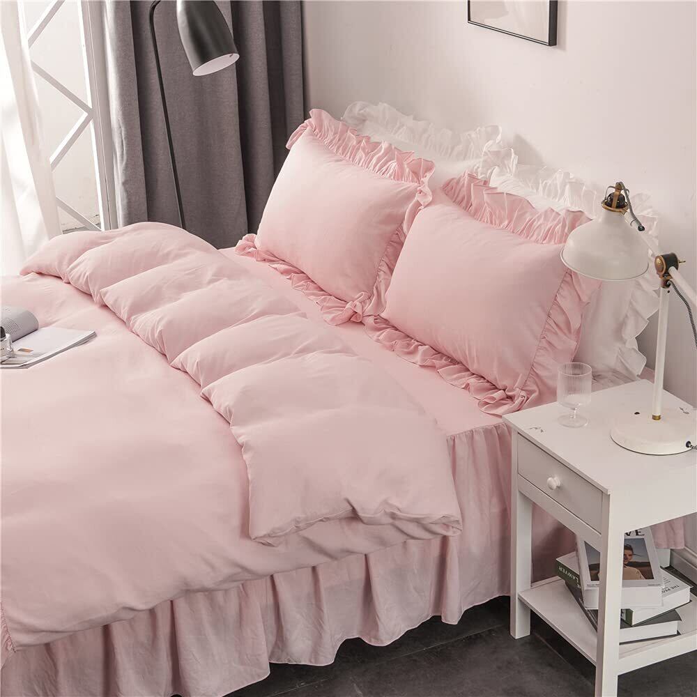 Ovege 布団カバー セミダブル 4点セット 掛け布団カバー ベッドスカート 洋式 枕カバー かわいい フリル付き おしゃれ ベッド用 布団用 ベット 寝具カバー 姫系 ピーチスキン加工 北欧 安心 清潔 丸洗いOK 抗菌防臭 洗い替え速乾 (ピ | Synergia