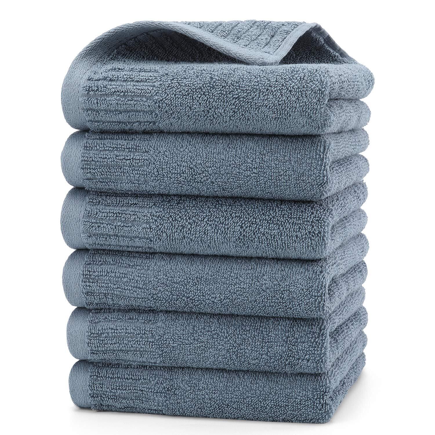 フェイスタオル グレー 無地 TMVOK タオル おしゃれ 北欧風 綿100% 6枚セット 瞬間吸水 速乾 35*70cm 厚手 大判 抗菌防臭 家庭用、ホテル、業務用、スポーツなどにも最適 四季通用 ブルー 6枚 | Synergia