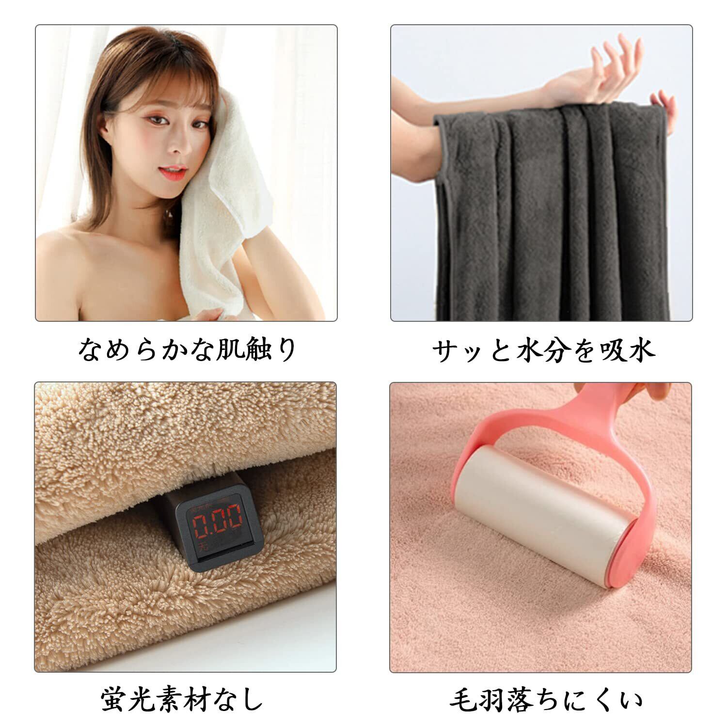 【ふわふわ】細番手の上質マイクロファイバーを採用し、ふんわり柔らかな拭き心地で、肌がこすれることもありません。低摩擦でマシュマロのような肌触りを実感できます。肌や髪の傷みが気になる人や、小さな子ども・赤ちゃんにも最適です。