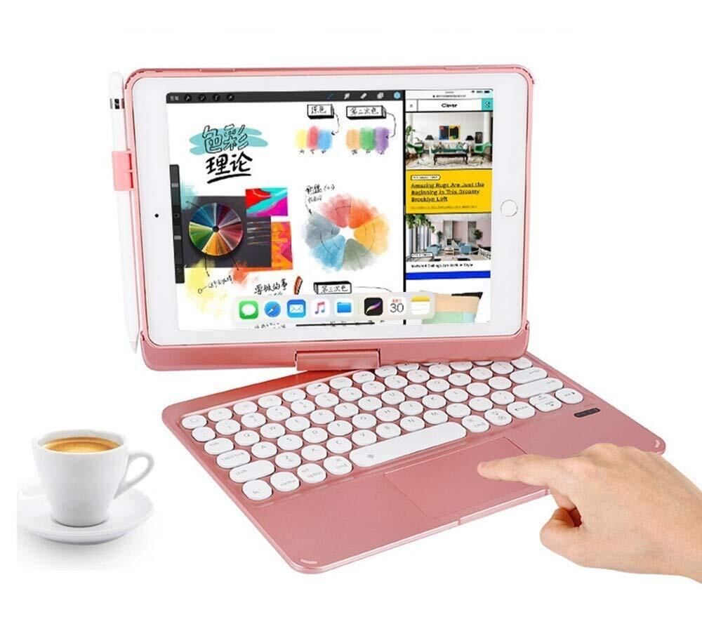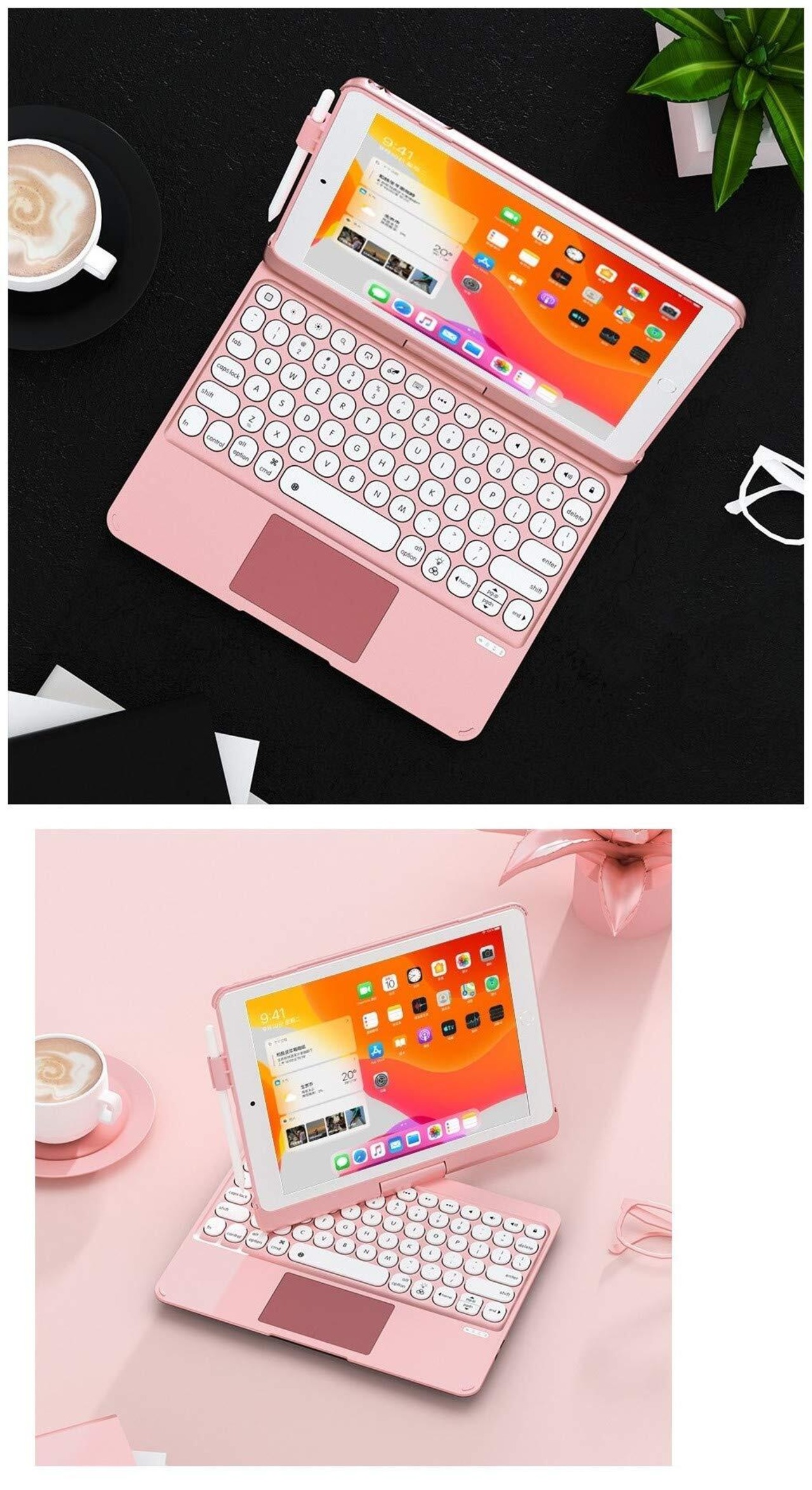 360度回転 iPad6 iPad5 iPad Air2 キーボード ケース タッチパット搭載 マウス機能 バックライト付き オートスリープ機能 丸型キー 折畳み iPad 第6世代 第5世代 9.7インチ カバー 取り外し可能 折畳み ペンホルダー付き (iPad6/iPad5/Air2 ローズ金)