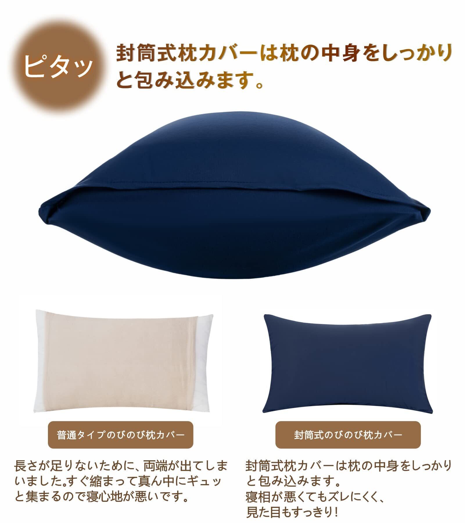 「様々な枕にピッタリフィット」 のびのびまくらカバー 2枚組40x60cm~43x63cm~50x70cm兼用 封筒式 枕カバー オールシーズン ピローケース 抗菌防臭 吸汗速乾 よく伸びる 伸縮 丸洗い 本体サイズ 43×63cm ベージュ UP | Synergia