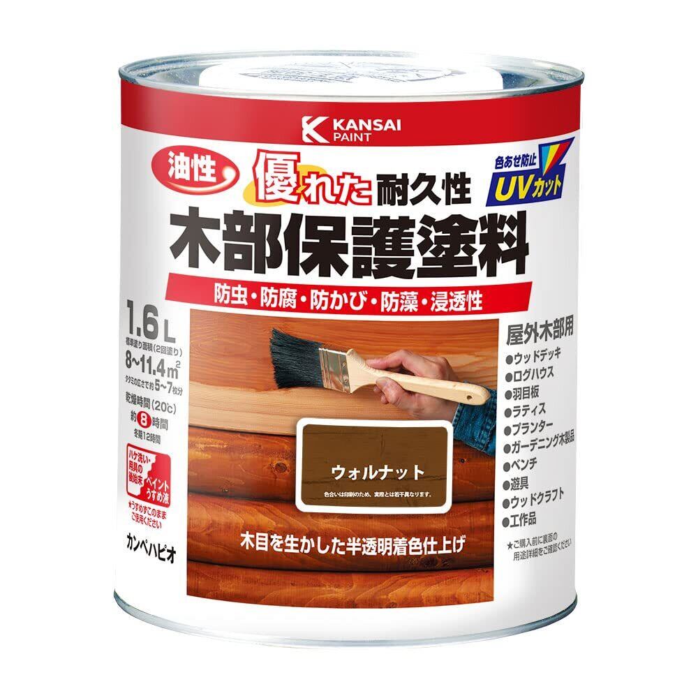 カンペハピオ ペンキ 塗料 油性 半透明カラー 木部保護 防虫 防腐 防かび 防藻 油性木部保護塗料 ウォルナット 1.6L 日本製 00237643571016