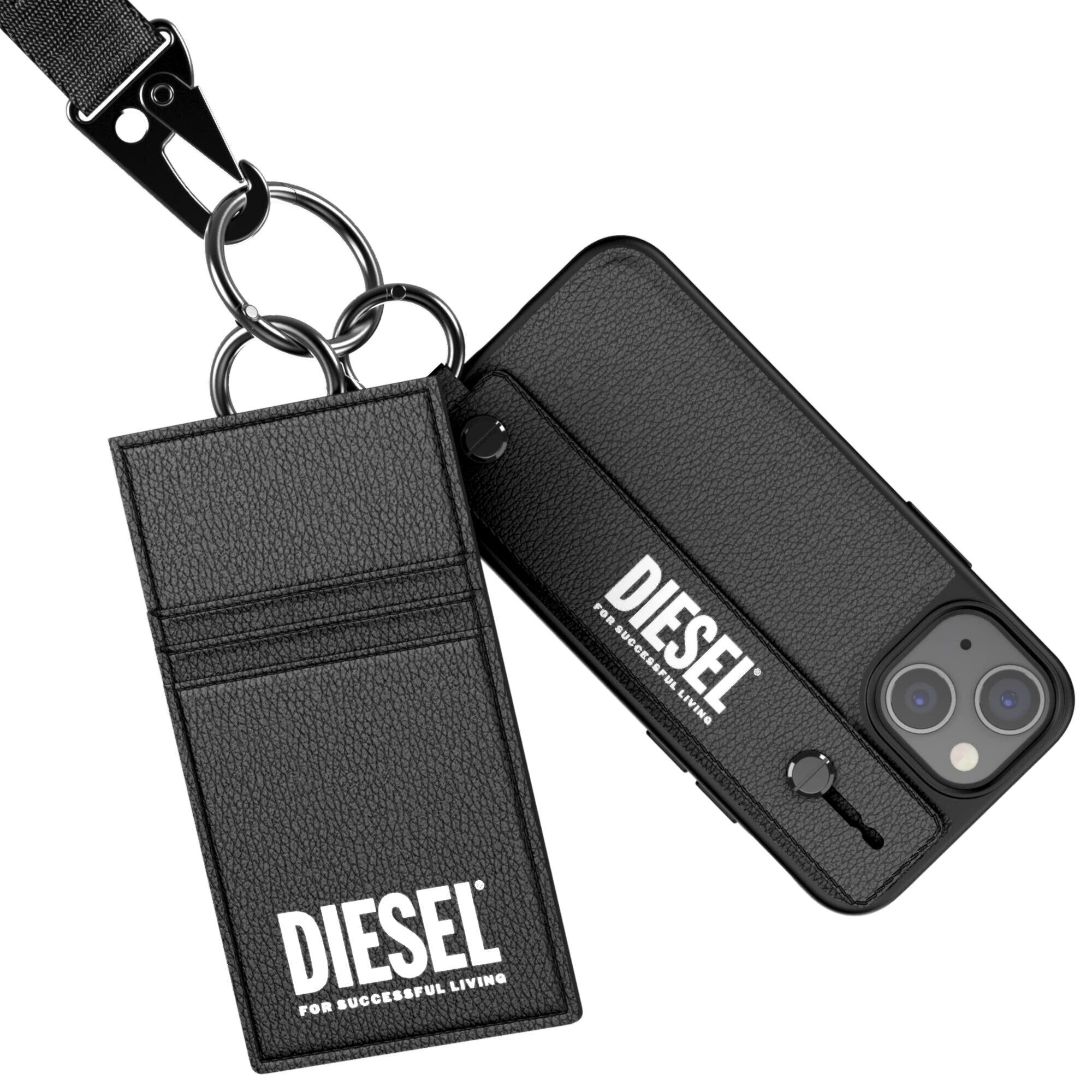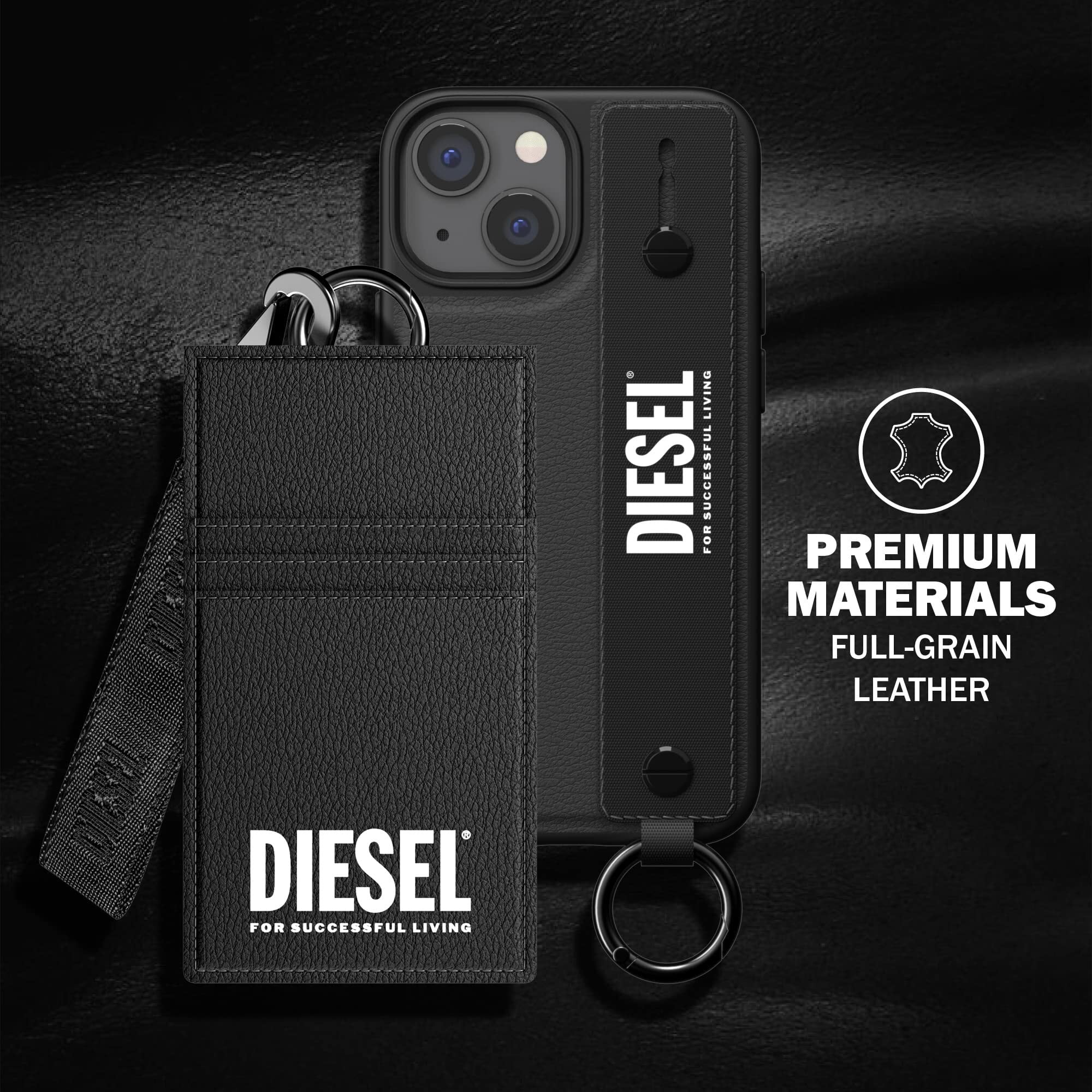 DIESEL iPhone 13 mini 5.4インチ ケース スマホスタンド レザー カードケース付きハンドストラップセット FW21 (ディーゼル iPhone13 mini ブラック)