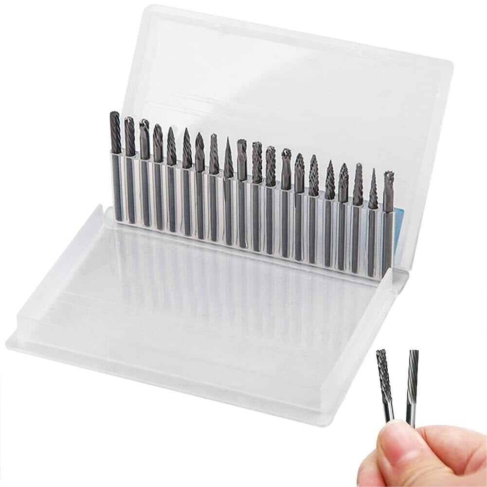 Bestgle超硬バー 3mm軸 超硬カッター ダブルカット タングステンバー ゴリゴリ削れる 回転ヤスリセット 超硬刃ドリルビット リューター ビット切削 研磨用 刃幅3mm 20本入り 収納 | Synergia