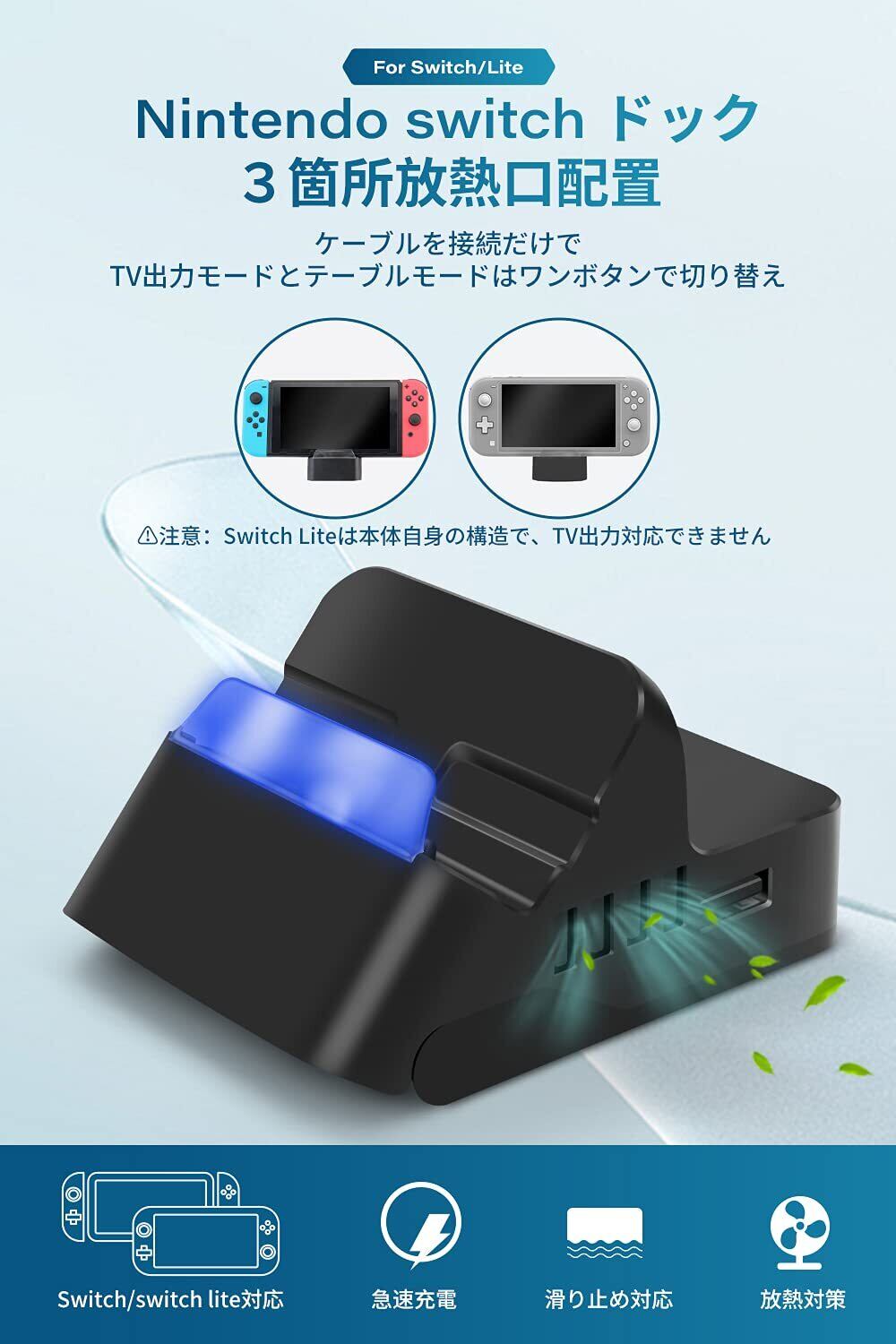 【優れた放熱性能・滑り止め】純正のSwitch OLED/switchドックには通気口がほぼなく、冷却ファンも付いていないので熱がこもりやすいのですが、このミニドックは側面と底面に