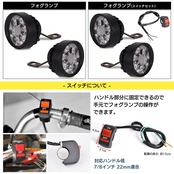 【スイッチのサイズ】 約42mm×約21mm ※スイッチは対応ハンドル径(7/8インチ 22mm)一般的なハンドルバーのサイズに適用します。 ※フォグランプと繋げる事で手元で操作、コントロールが可能になります。