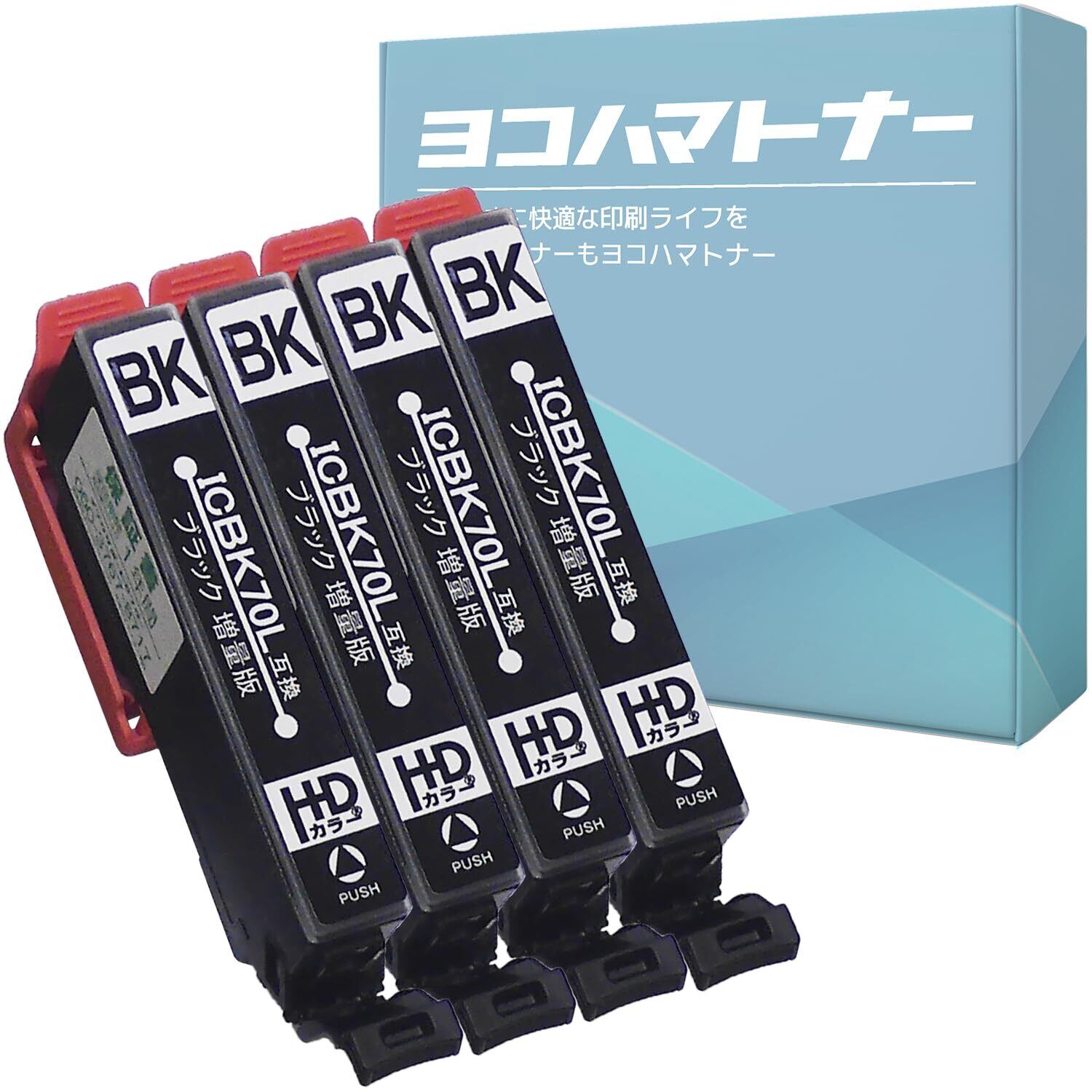 【横トナ】エプソン用 IC70L さくらんぼ 互換インク ICBK70L ブラック 4本セット 増量版 残量表示対応 対応機種:EP-306 EP-315 EP-706A EP-775A EP-775AW EP-776A EP-805A EP-805AR EP-805AW EP-806AB EP-806AR EP-806AW EP-905A EP-905F EP-906F EP-976A3