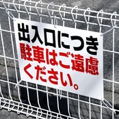 「出入口につき駐車はご遠慮ください。」 注意 パネル看板 幅40cm×高さ30cm