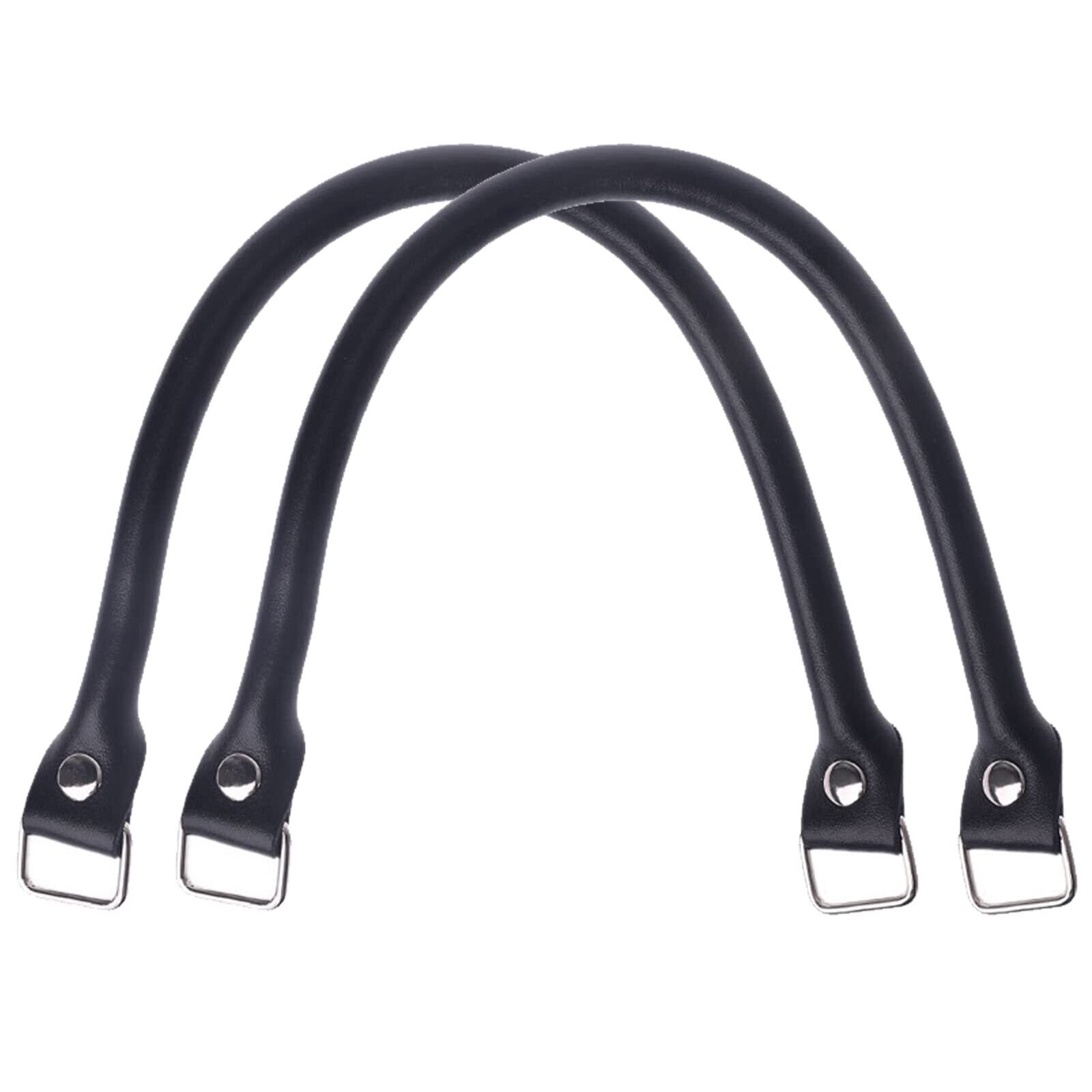 バッグ持ち手 本革 かばん取っ手 ビジネスバッグ修理用 補修用持ち手 D菅付き 取っ手着脱可能 手芸用持ち手 交換用持ち手 (ブラック)