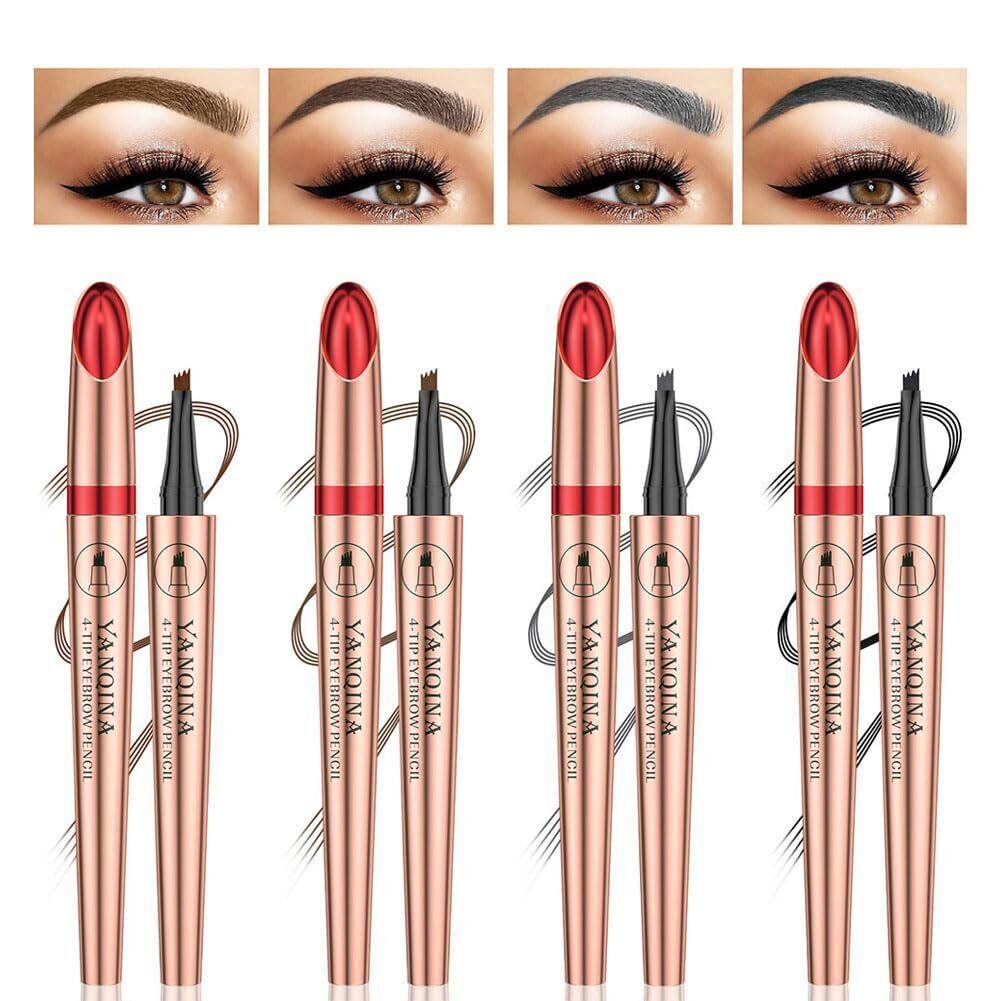 ❤【最新版、4d液体アイブロウ】手軽なペンタイプの眉ティント。ユニークな4ヘッドの二股に分かれたペン先のデザインで、さまざまな眉毛。なめらかでスイスイと簡単に描ける。まるでクレヨンのような柔らかな芯で濃淡・太細も自在。書き始めてから30秒~1分以内なら自由に直せます。これ1本で自眉のような自然な眉メイクが完成です。