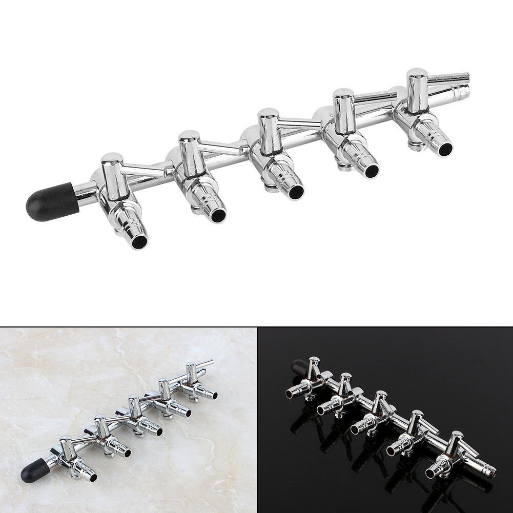 【5又水槽用エアバルブ】 5ウェイがあるの水槽用エア分岐管です。全長11.3cm、口経4mmのヘッドが5個あります。ステンレス鋼製で耐用性と耐食性があります。水槽用アクセサリーとして優れたの特性が持っています。