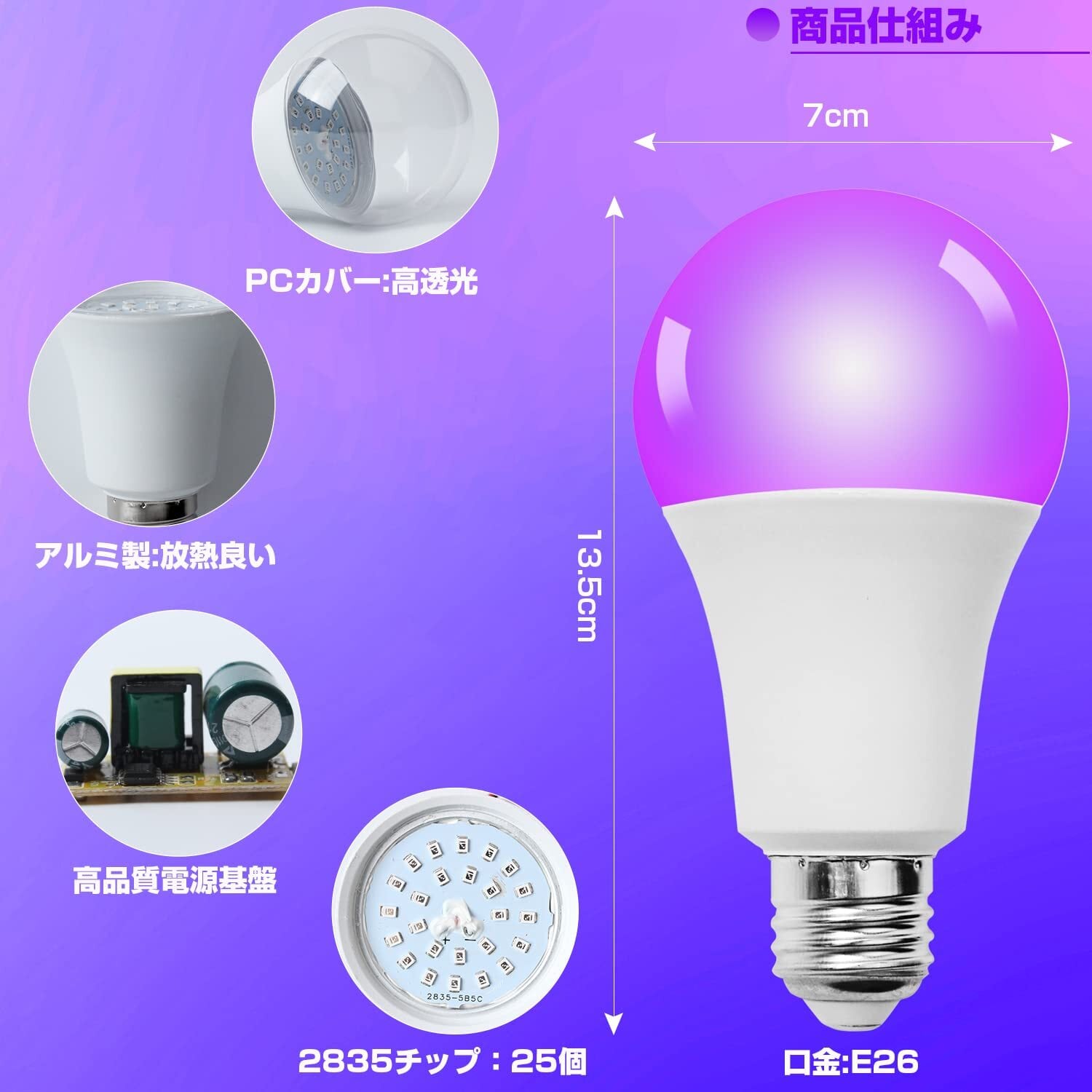 【在庫セール】ハロウィン パーティー 雰囲気 間接照明 偽札対策 UV蓄光ライト 蓄光素材照明 紫外線ランプ 鉱物鑑定 ペットのオシッコ LEDテープライト 見えない汚れ確認 電球 異物発見 ブラックライト (LED紫光電球*1個*1) | Synergia
