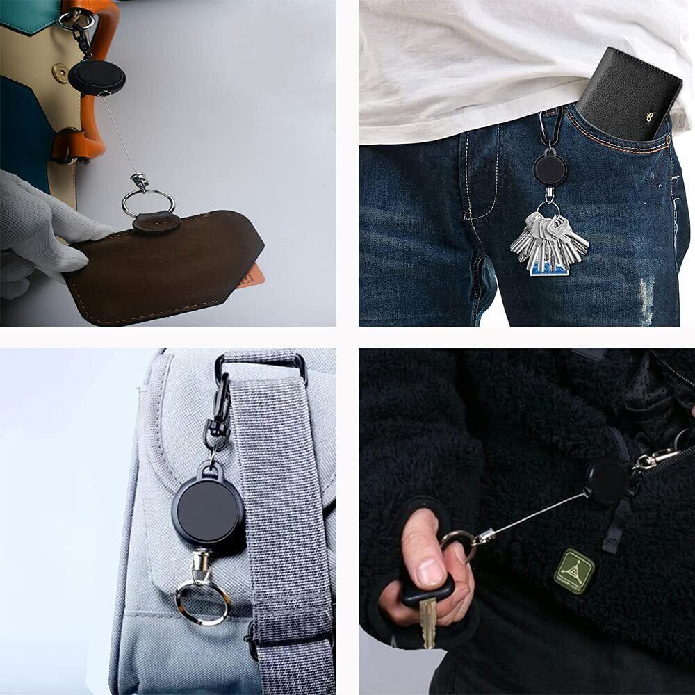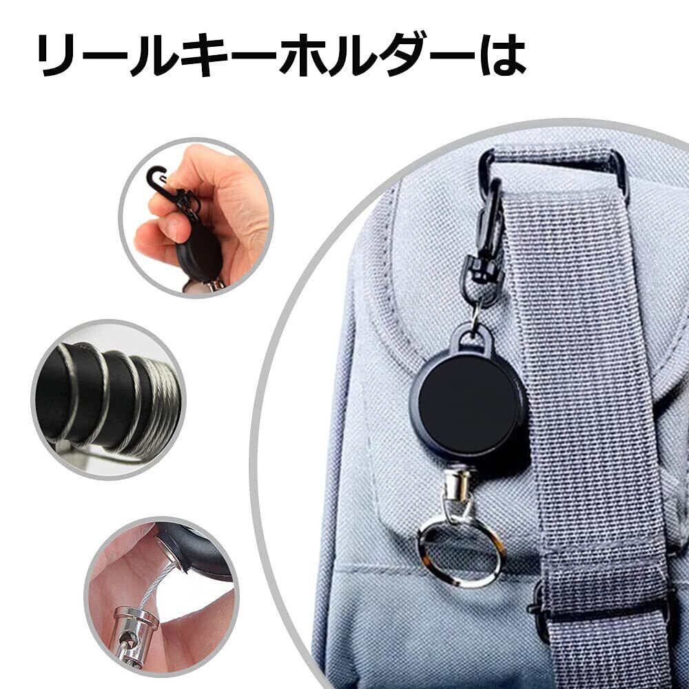 [Tosenk] リールキーホルダー カラビナ付 伸縮自在 紛失防止 ブラック 3個組