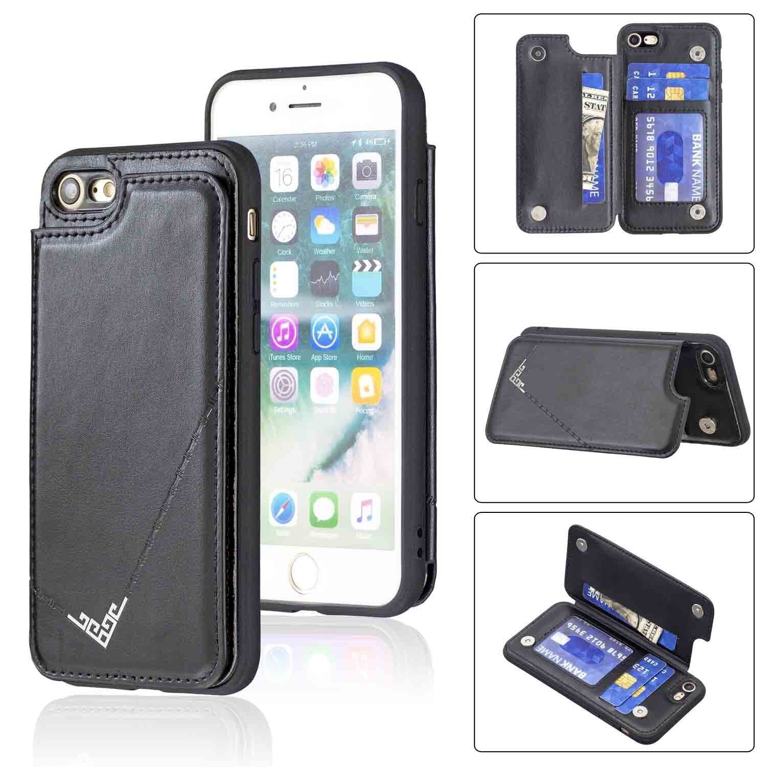 【Anrek】新型 APPLE iPhone SE (2020) / SE2 (第2世代) / iphone8 / iphone7 用 背面 カードケース 手帳型 ランヤード付 背面カバー ( ブラック )アップル アイフォse/se2/8/7 スマホケース サイドマグネット カード収納 横置き機能 PUレザー 財布型 携帯カバーiphonese BLACK