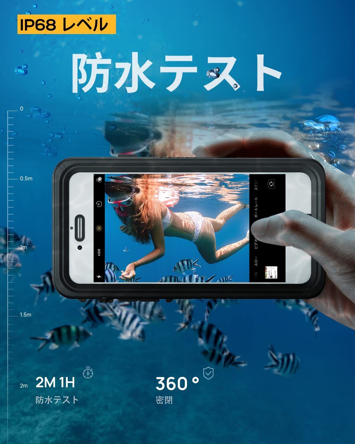 【IP68防水&多保護】防水国際保護等級IP68認定を獲得、 水没しても内部への水の侵入を完全にガードできます。 雨や、雪、泥や砂などから保護できます!ご注意:ご 使用の前に必ず携帯の代わりに一枚の紙をケースに入れて、iPhone SE 2022(5G)/ SE 2 / 7 / 8 用防水ケースは最大水深2mで30分間の防水が可能試験を行 ってください。