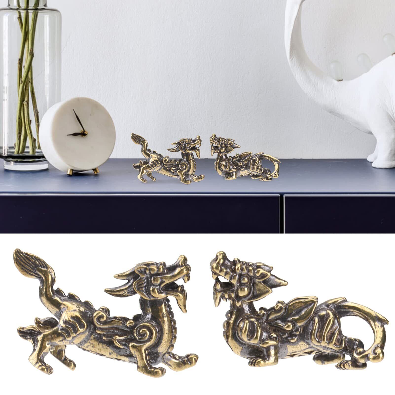 DECHOUS 麒麟 フィギュア 置物 貔貅 真鍮 装飾 風水 繁栄 祝福 オフィス コレクション サラス 工芸品 伝統 本棚 祝賀 カサ 装飾 ミニ 新築祝い ラッキー 寮 お土産 2個