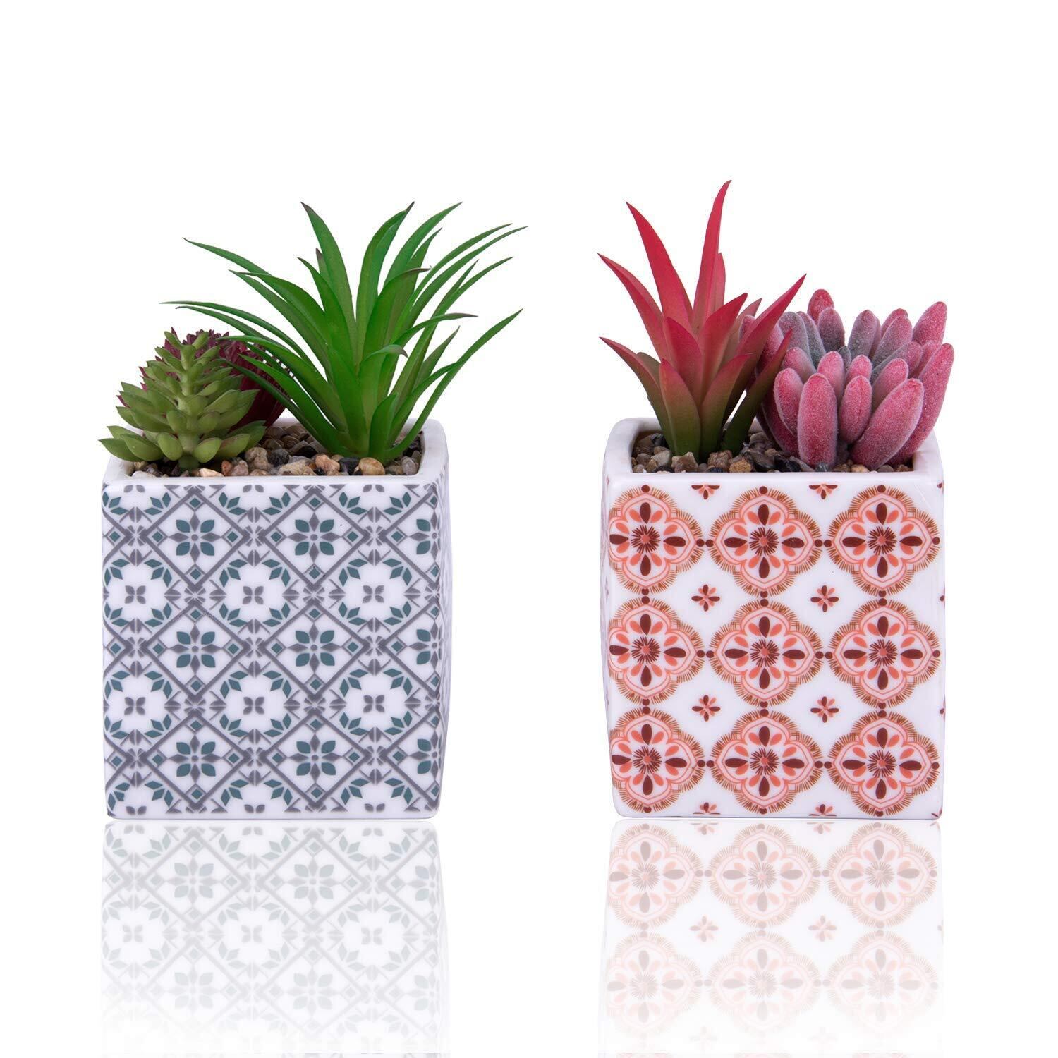 【パッケージ】:2種類のミニ人工多肉植物。 カラフルでかわいい。 本物クオリティを求めた枯れない人工多肉植物、人工観葉植物です。温度管理や水やり不要で虫も近寄りません。
