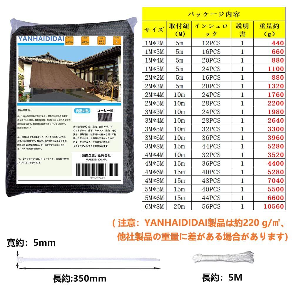 日よけ シェード オーニング クールシェード 日よけシート サンシェード 日除けセイル UVカット ガーデン 庭 バルコニー用 (コーヒー色)全16サイズ 3/4/6/8/9/10/12/15/18/20/24/32平方メートル 一平方メートルあたり約220グラムです (1M*2M)