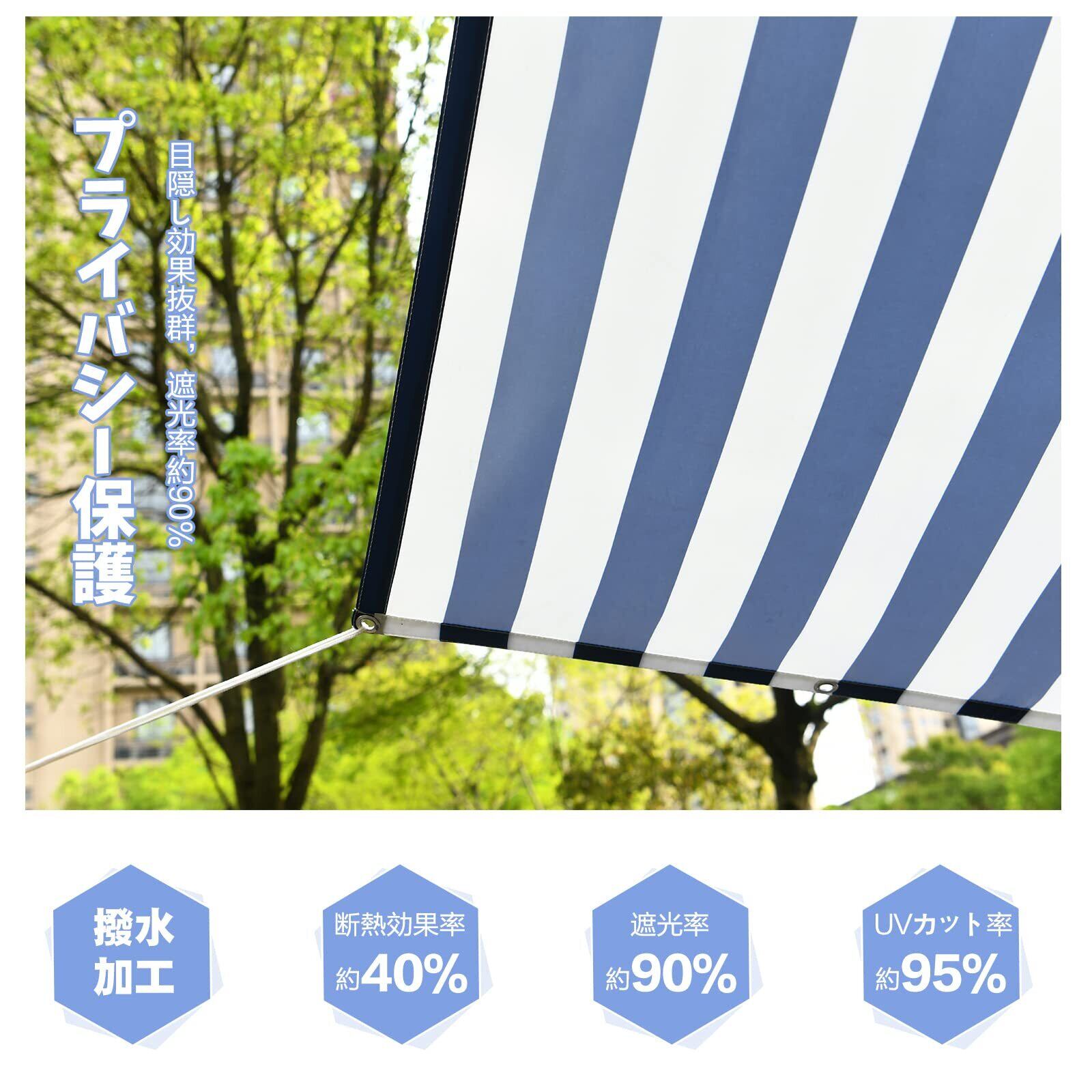 日光や雨を遮る大判の日除けシェード。暑い日や急な雨でも安心して屋外で過ごせます。クールなブルーとホワイトのカラーリングが目を引く、人気の商品です。