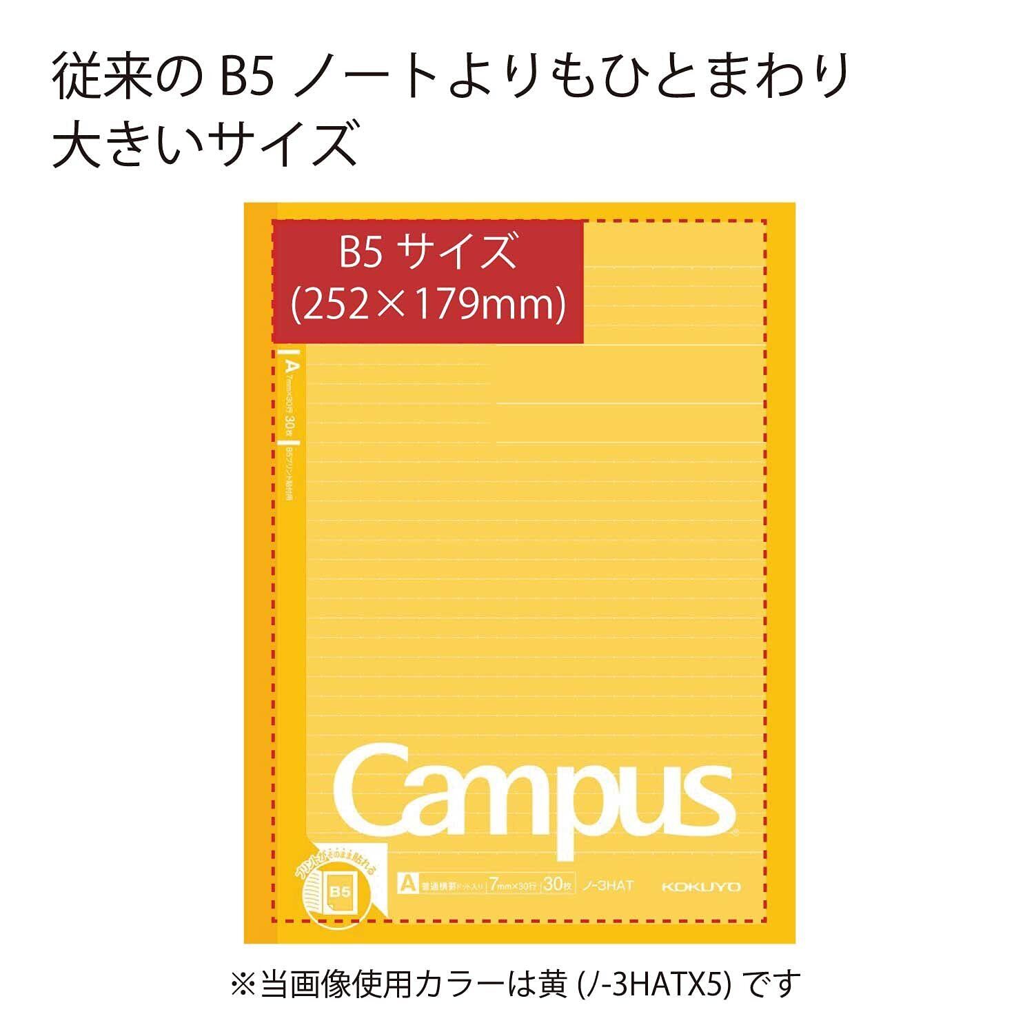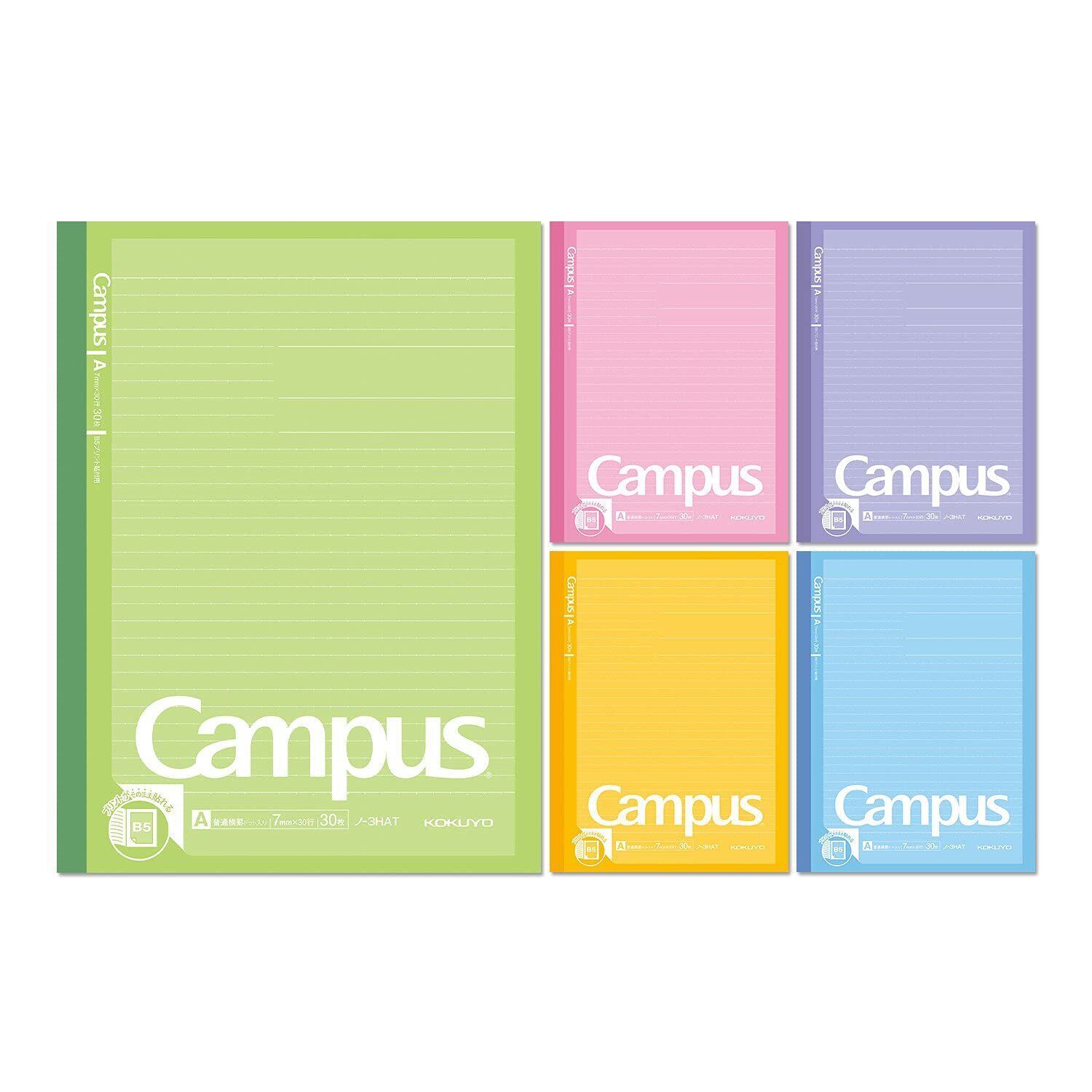 コクヨ ノート キャンパスノート プリント貼付用 B5ノビ ドット入りA罫 5色パック ノ-3HATX5