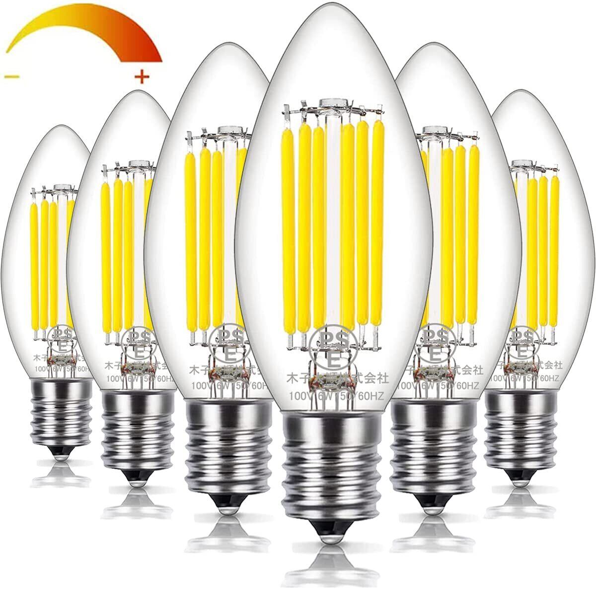 【人気商品】広配光 4000K LEDフィラメント電球 無段階調光 6W 昼白色 密閉器具対応 調光器対応 PSE認証済み 60W形相当 蝋燭型 LED電球 E17 6個入 シャンデリア電球 Acidea | Synergia