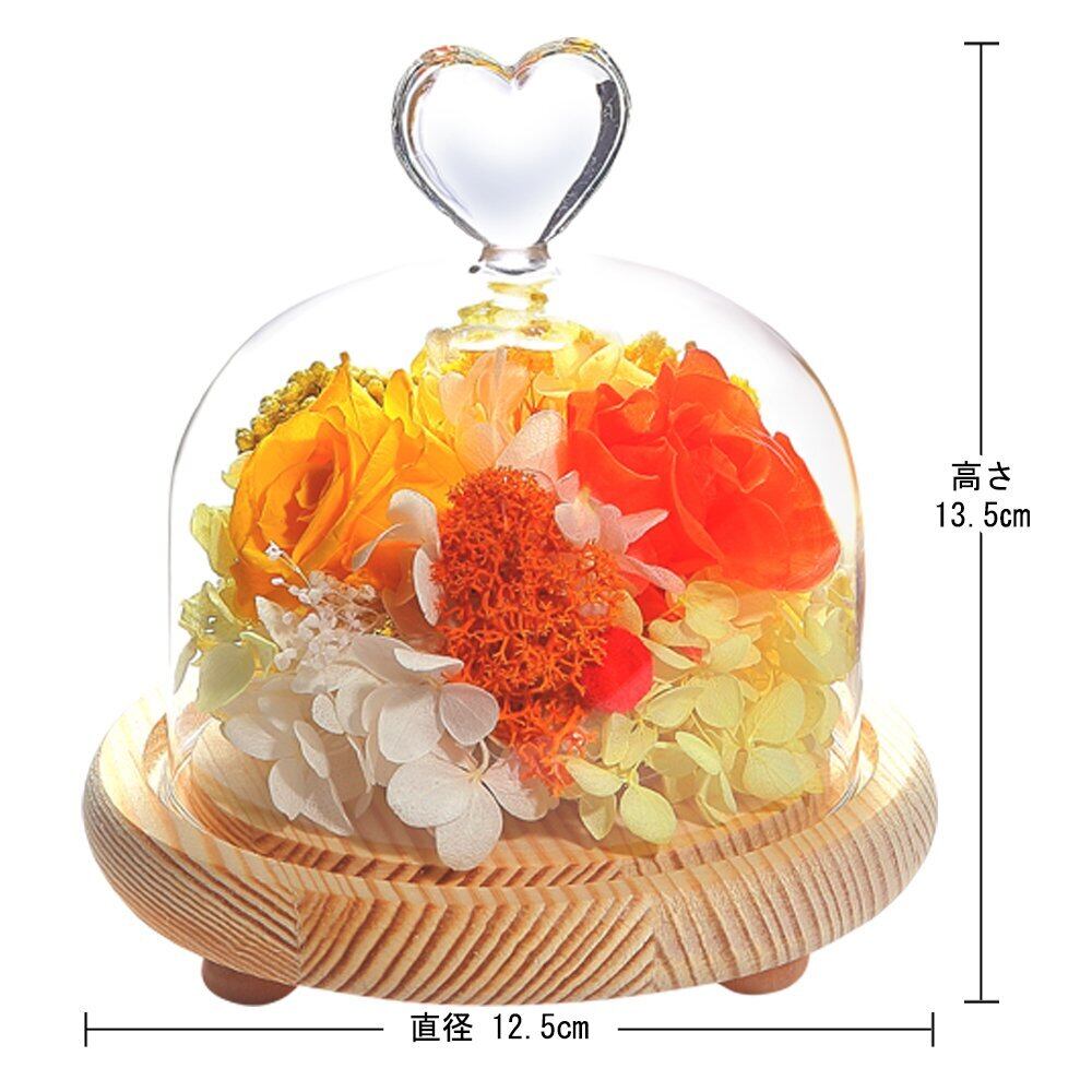 ティートサイト プリザーブドフラワー フラワーアレンジ ラッピング済み ハートガラスポット 3輪 (バラ オレンジ )
