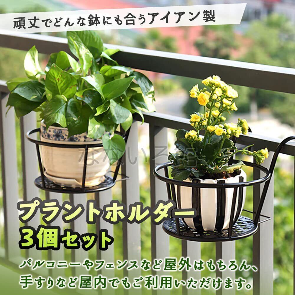 プラントホルダー3個セットです。 バルコニーやフェンスなど屋外はもちろん、手すりなど屋内でもご利用いただけます。