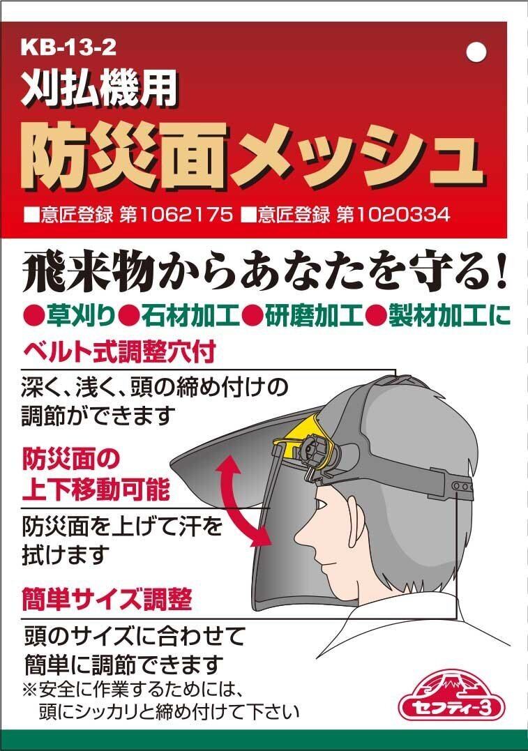 セフティー3 草刈機 刈払機用 防災面 メッシュ 通気性 KB-13-2