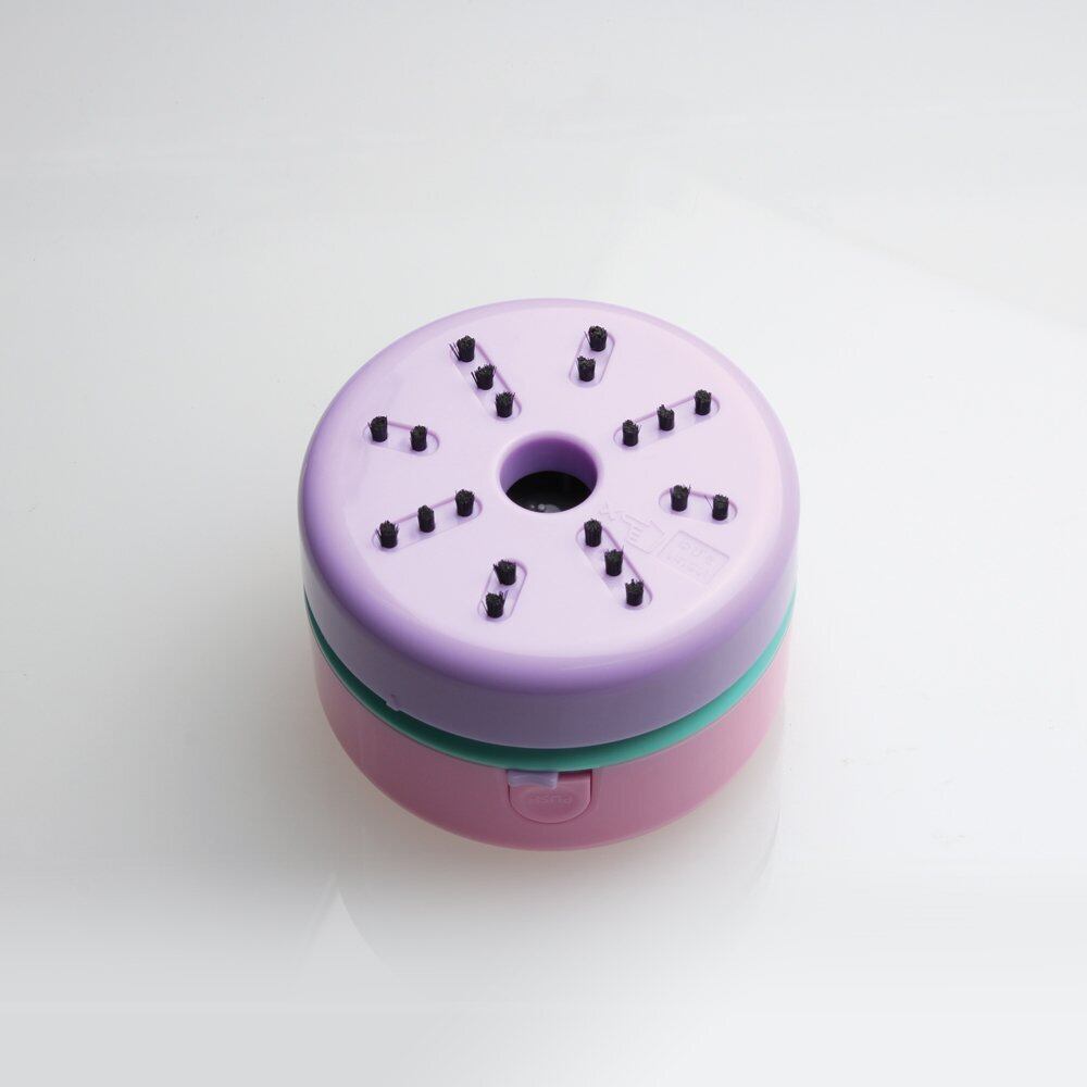 使う場所を選ばない、乾電池式のコンパクトな卓上掃除機です。