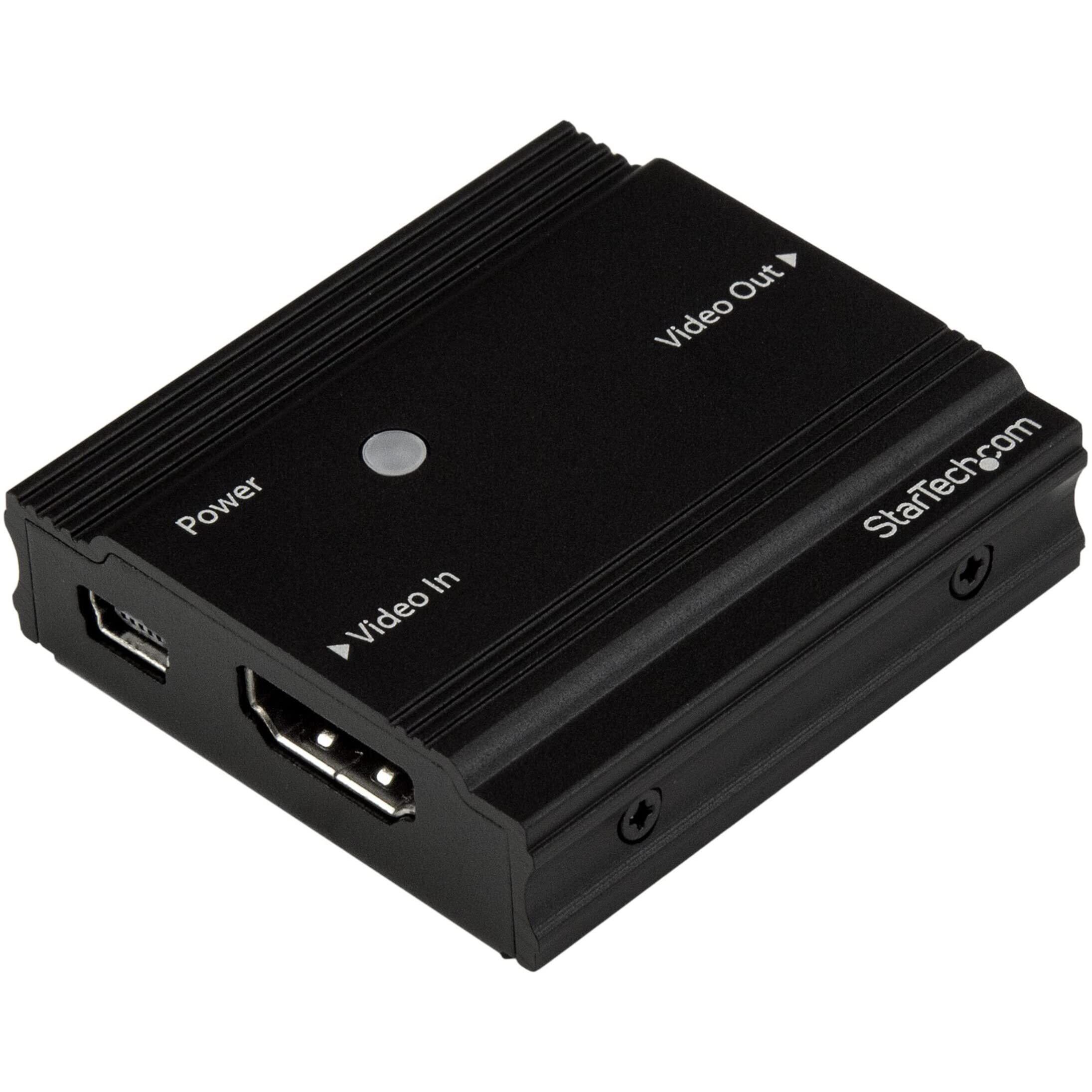 標準のビデオケーブルを使用してHDMIを延長する場合、HDMI 2.0対応デバイスの高解像度ビデオは1mほどで使えなくなります。このHDMIシグナルブースターを使用すると、4K 60HzのHDMI 2.0解像度が10mまで保持されます。