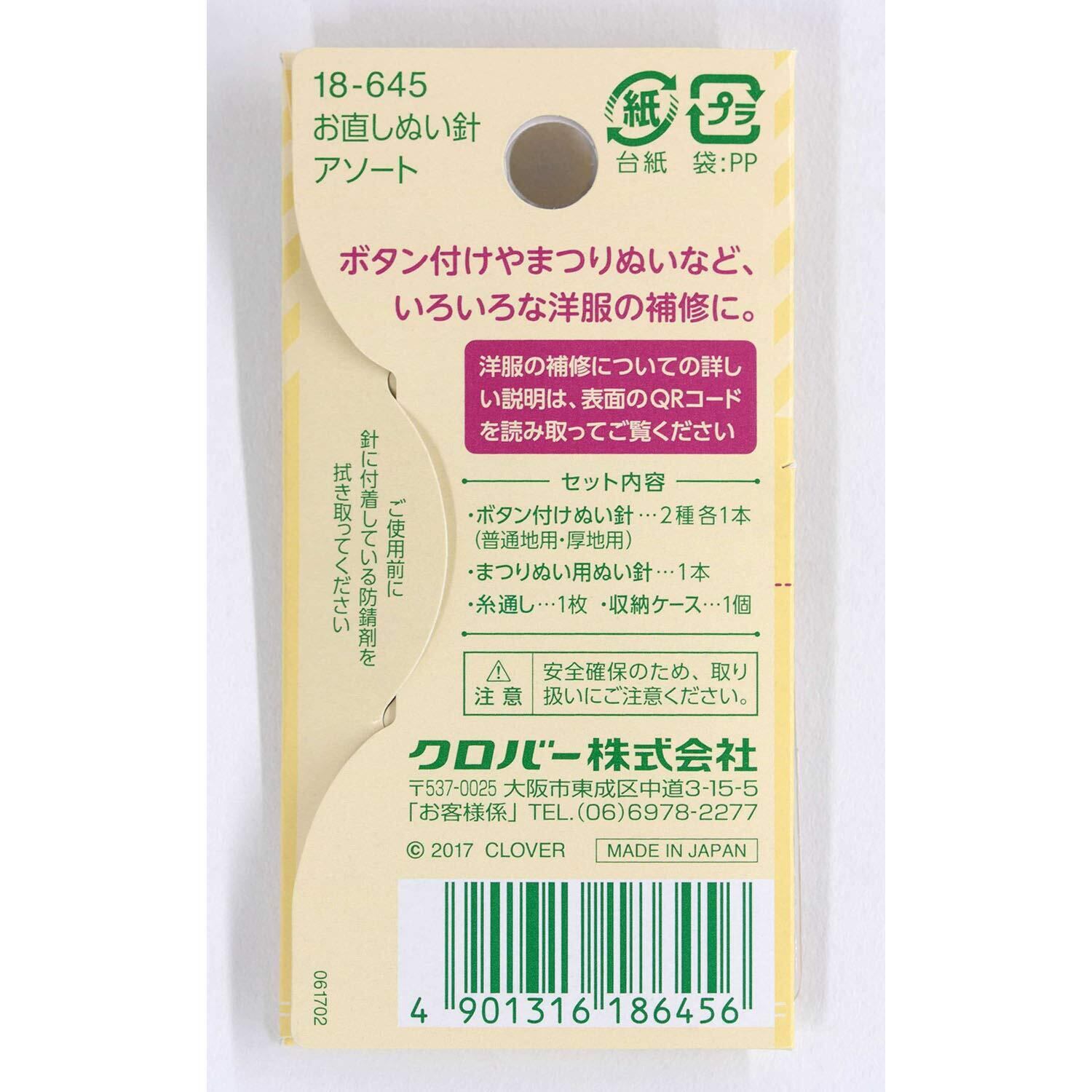 [セット内容]ボタン付けぬい針:2本(普通地用・厚地用各1本)、まつりぬい用ぬい針:1本、糸通し、収納ケース